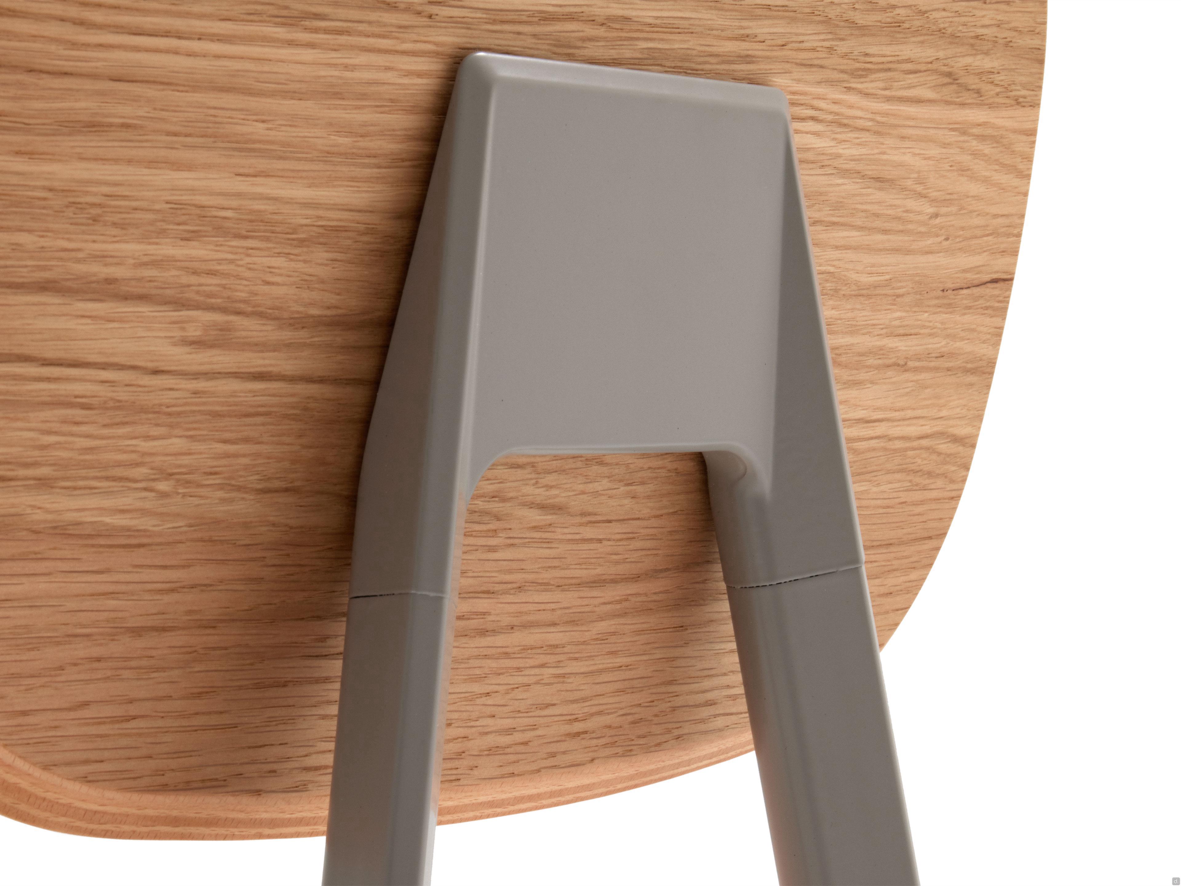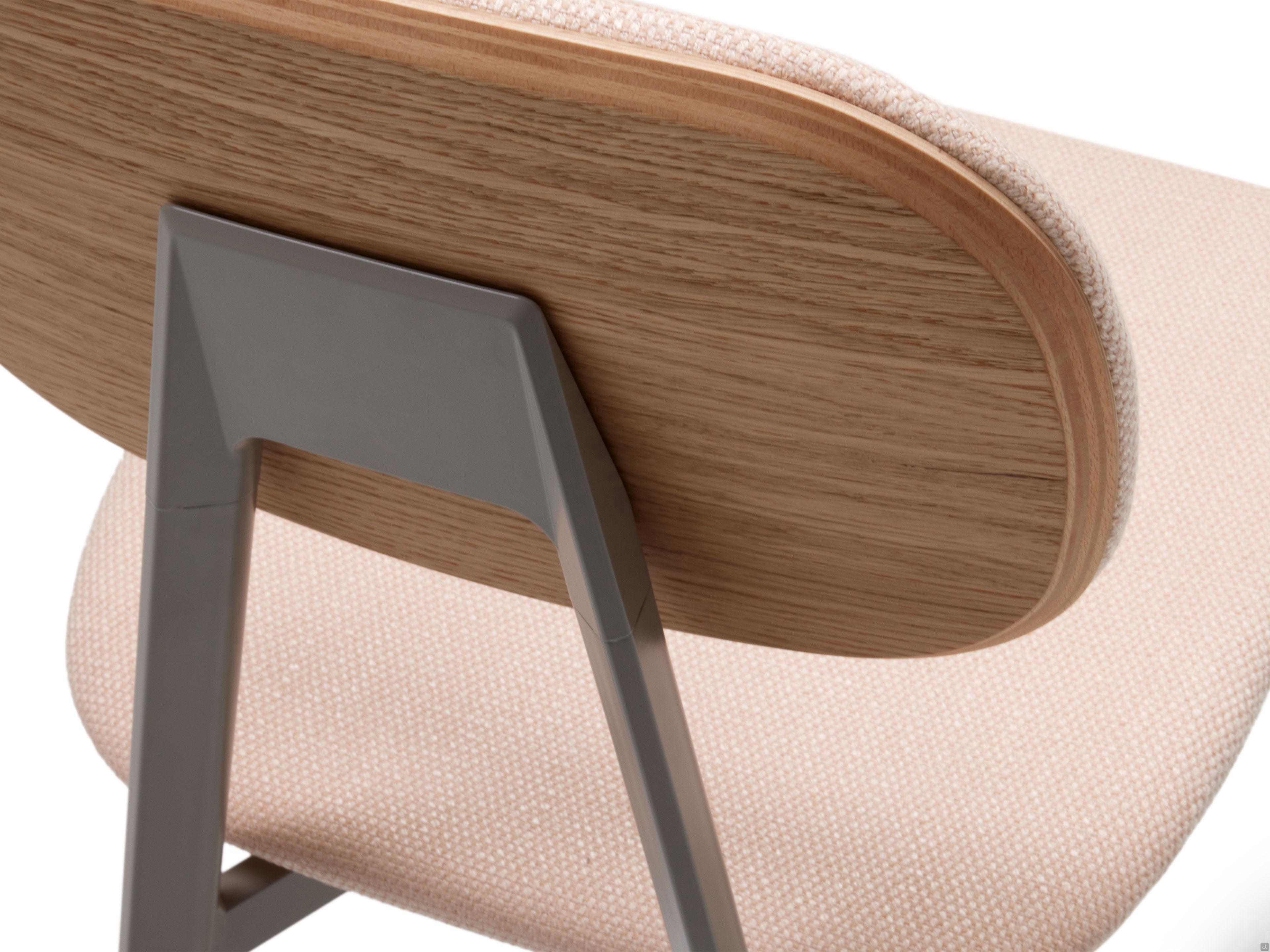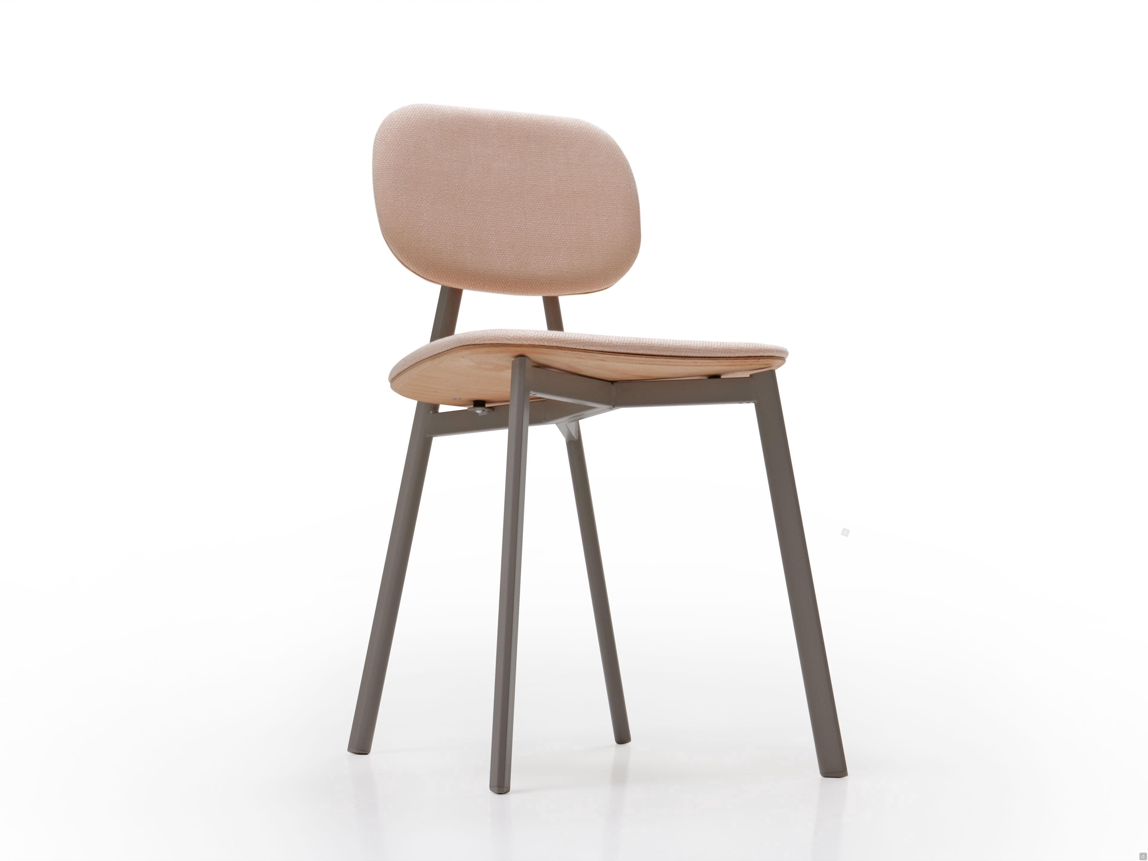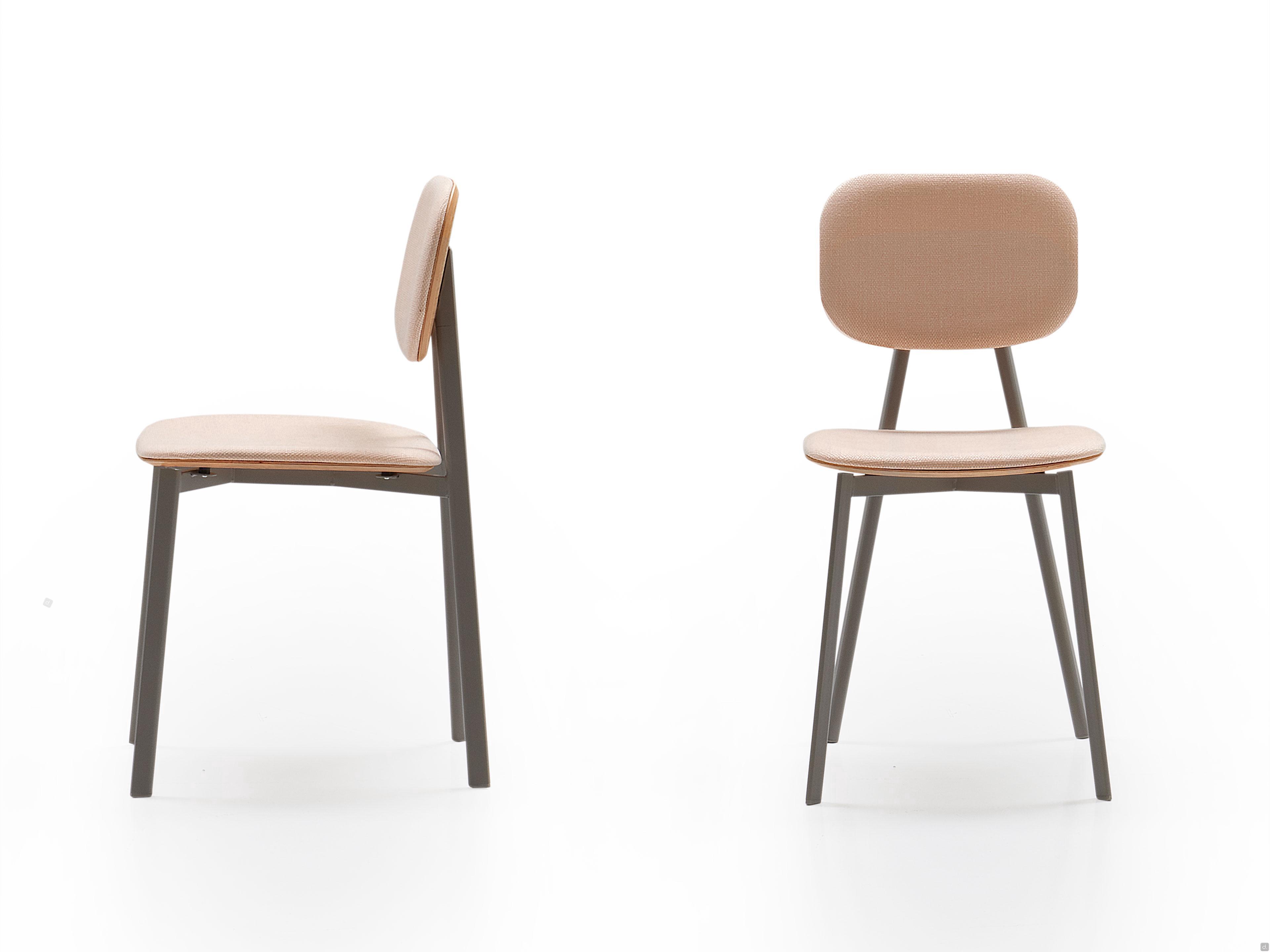 Abmessungencm 43 t.51 h.85 / sitzhöhe.45Materialien und Oberflächen- Sitz: Stoff Mam col.M105- Rückenlehne: Eiche Natur ohne Äste- Struktur: Metall lackiert Taubengrau