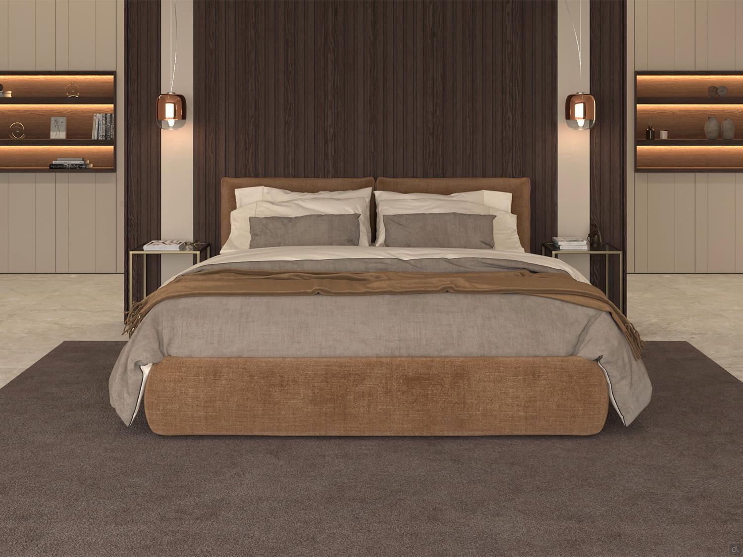 Das gepolsterte Doppelbett mit Stauraumbox Astoria ist ein Bett mit eher großzügigen und einhüllenden Formen. Das Kopfteil zeichnet sich durch zwei große mit Reliefnähten verarbeitete Kissen aus, während der abgerundete Bettrahmen die Möglichkeit einer bequemen Stauraumbox bietet. Die großen Textilflächen werden durch die große Auswahl an verfügbaren Bezügen in Natur Leder, Stoffe mit unterschiedlichen Strukturen und Webarten, Samt oder Kunstleder aufgewertet. Alle Bezüge sind vollständig abnehmbar und so konzipiert, dass das Bett schnell und einfach abgezogen und bezogen werden kann.