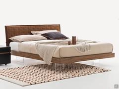 Auch die Füße sind individuell gestaltbar: Es gibt zylindrische Füße aus Metall oder aus lackiertem Holz in Mokka-Glanz oder aus transparentem Methacrylat in Parallelepiped-Form, um die Leichtigkeit des Bettrahmens zu unterstreichen. Für die Standard-Doppel- und Kingsize-Modelle in den Ausführungen matt lackiert, Modeholz und offenporig lackierte Eiche gibt es auch die Möglichkeit, einen schrägen Holzfuß zu wählen.