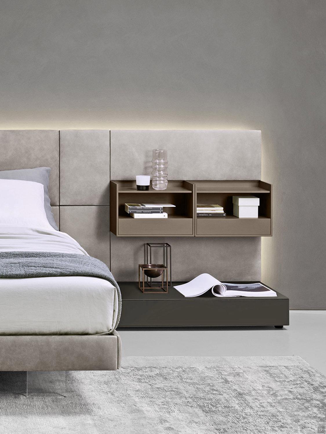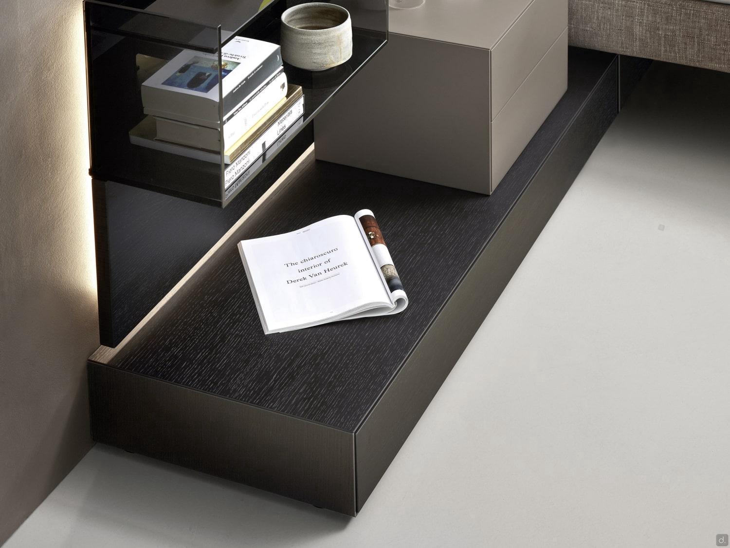 Um eine maximale Gestaltungsfreiheit zu gewährleisten, ist das California-Bodenbank in drei Modellen erhältlich: mit Schublade, Schublade mit festem Teil (für Bett auf Bodenbank) und Schublade mit offenem Fach, in verschiedenen Größen. Die zweifarbige Ausführung kommt besonders beim Modell mit offenem Fach zur Geltung, wenn Sie einen mutigeren Stil suchen.