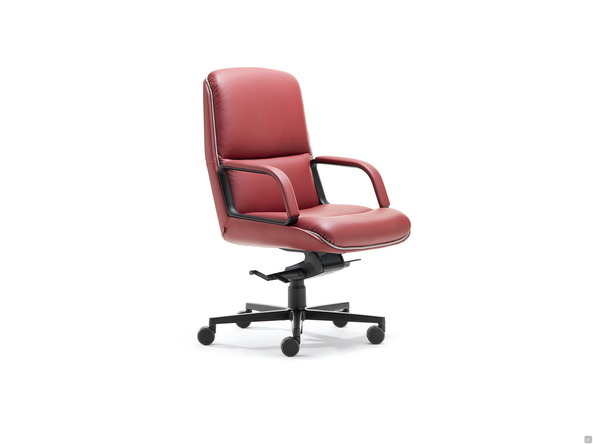 Kiruna ist ein Bürosessel mit gepolsterten Armlehnen und einer umhüllenden Form, dessen Sitzfläche vollständig mit Stoff, Kunstleder oder Leder bezogen ist und sich durch ein raffiniertes zweifarbiges Profil in Grau oder in der Farbe des Bezugs auszeichnet.Kiruna ist als Chefsessel und Bürostuhl mit drehbarem und höhenverstellbarem Sitz erhältlich, der mit einem komfortablen Schwenkmechanismus ausgestattet werden kann, oder auch als Besucherstuhl mit festem Freischwinger Gestell aus schwarz lackiertem oder verchromtem Aluminium.