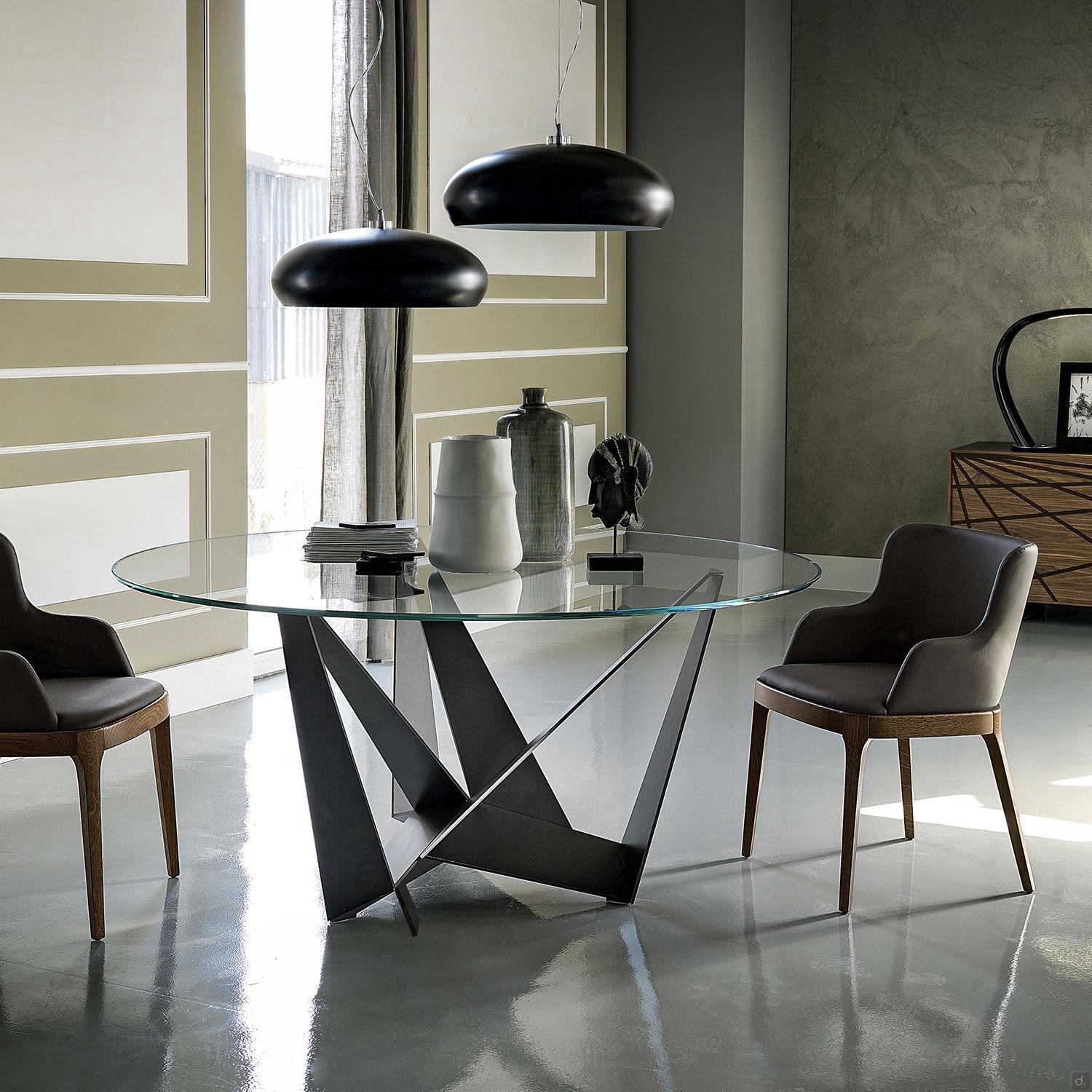 Skorpio Keramik von Cattelan ist ein Designertisch aus Glaskeramik mit einer Tischplatte in Marmoroptik und einem Untergestell aus geprägtem oder gebürstetem Stahl. Skorpio ist mit runder, rechteckiger oder geformter Tischplatte erhältlich, alle in fester Ausführung. Es handelt sich um ein Möbelstück mit modernen und originellen Formen, bei dem die Keramik-Tischplatte und die Metallstruktur in einem dynamischen und raffinierten Dialog stehen. Die runde Version umfasst auch eine exklusive Variante mit Holzrahmen und zentralem Keramikeinsatz – auf Wunsch auch drehbar – für einen angenehmen Kontrast zwischen der Wärme der Eiche und der zeitlosen Autorität der Marmormaserung.
