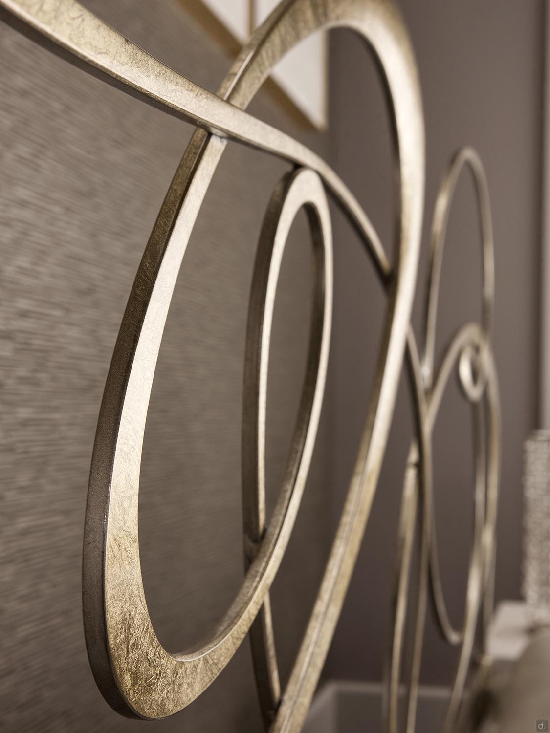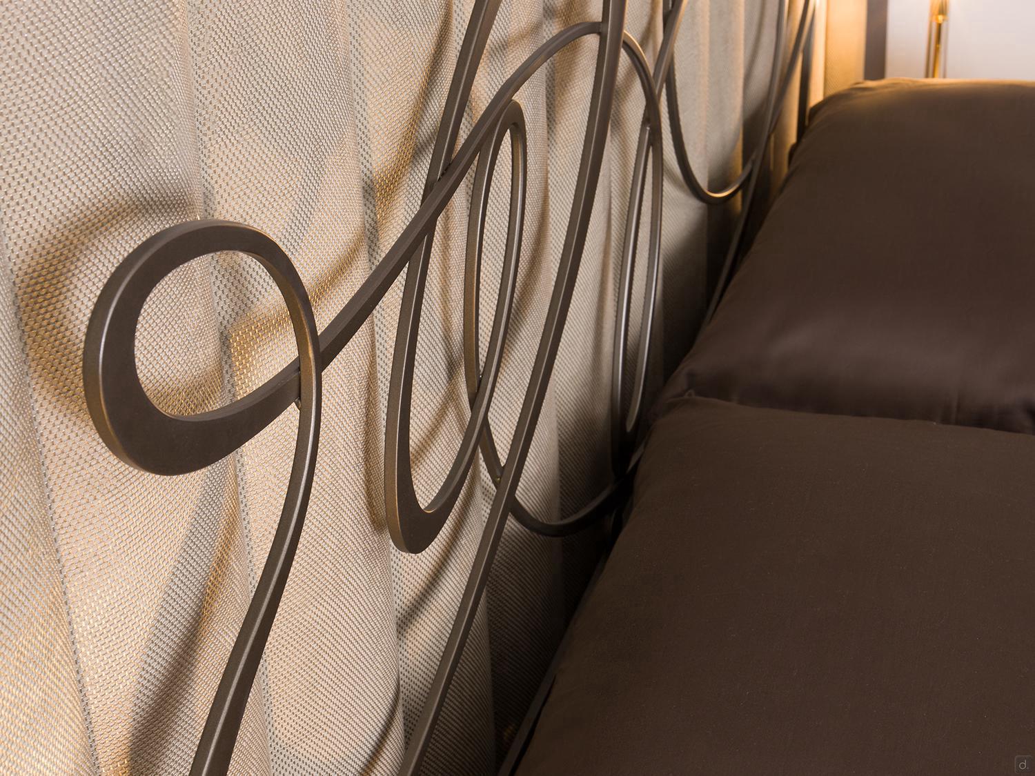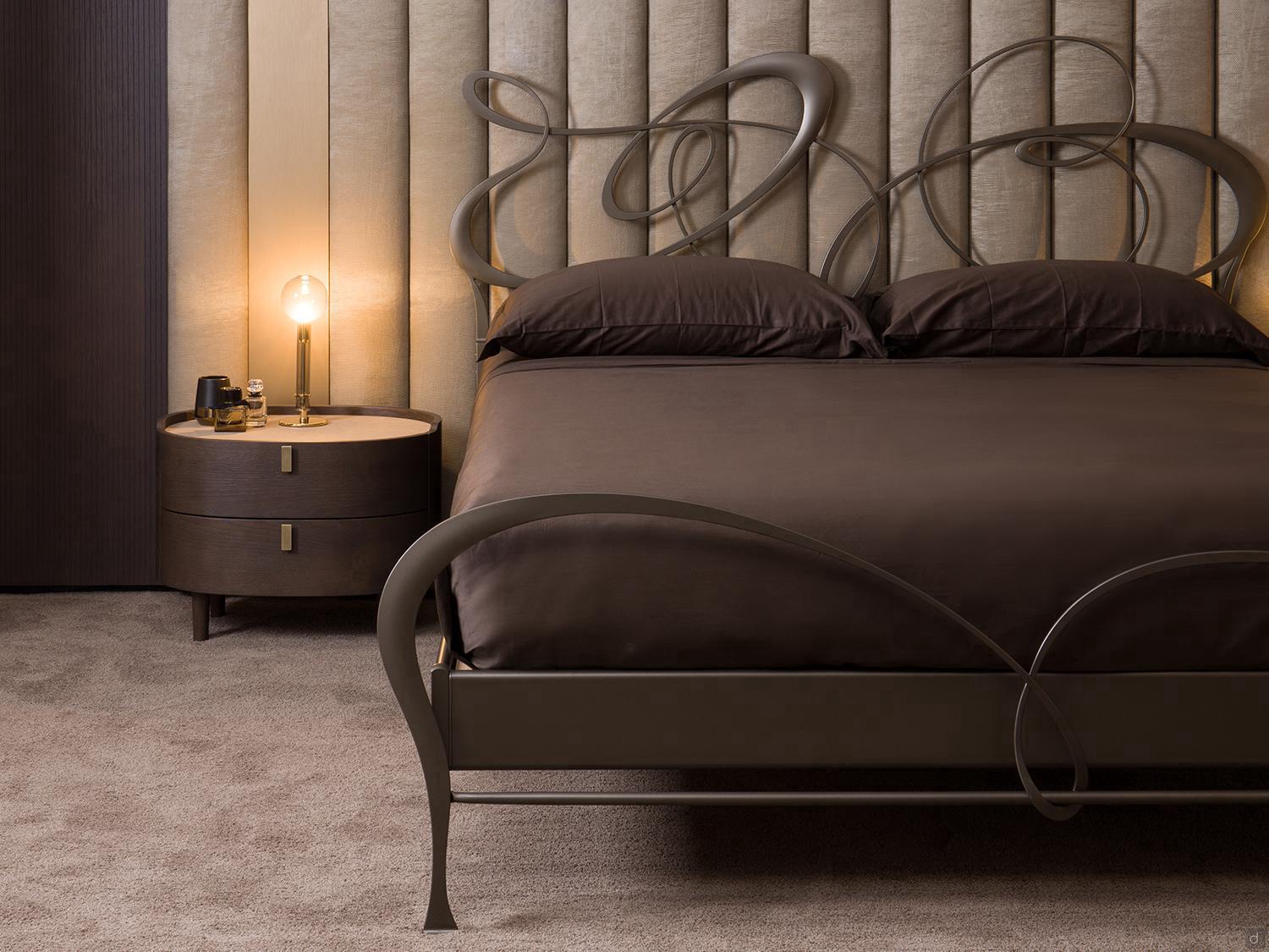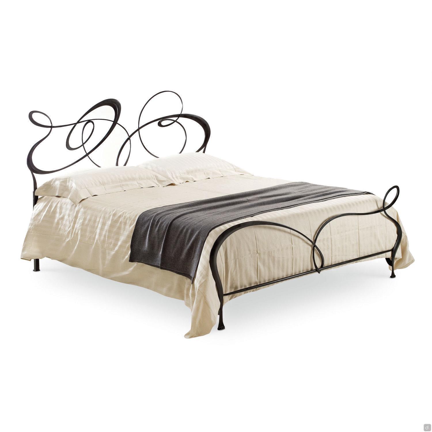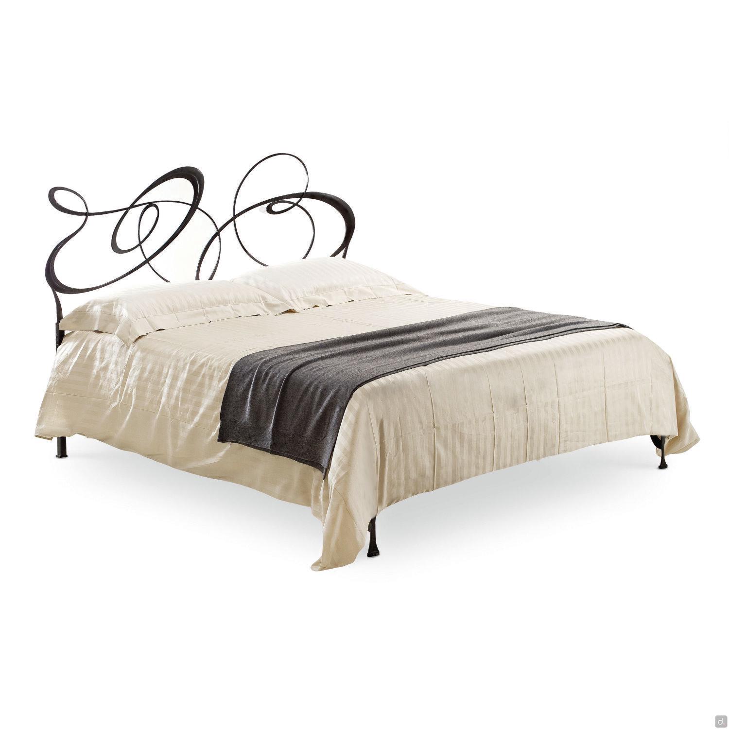 Die Struktur besteht vollständig aus Laser geschnittenem, poliertem und Hand bearbeitetem Schmiedeeisen in einer breiten Palette von Ausführungen von Silber bis hin zu glänzend lackiert. Die Version mit Staukasten ist mit einem mit Stoff, Kunstleder oder Leder bezogenen Bettrahmen ausgestattet.