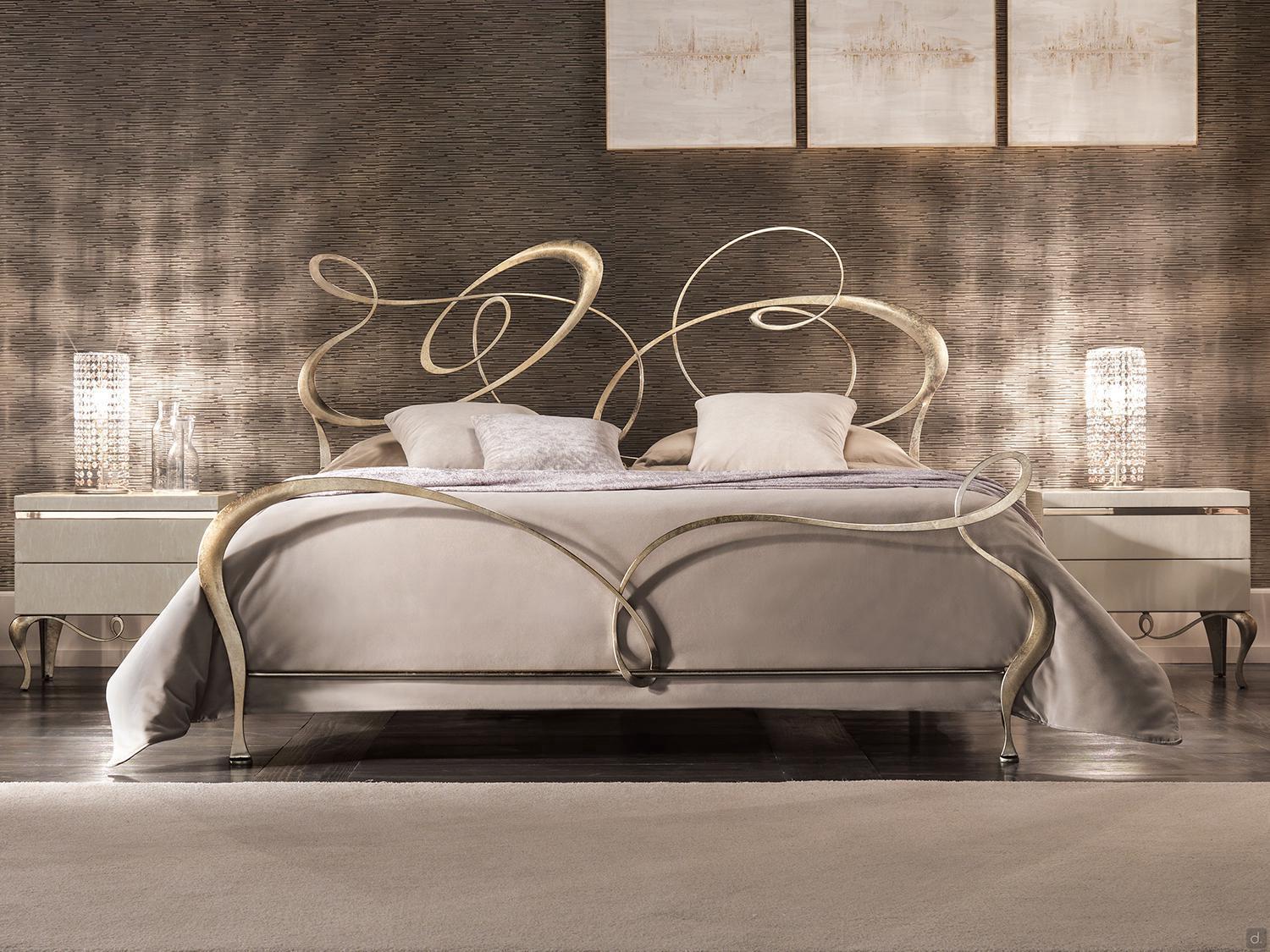 Ghirigori von Cantori ist ein Doppelbett aus vergoldetem Eisen, das auch in den Ausführungen French, King Size und Super King Size erhältlich ist.