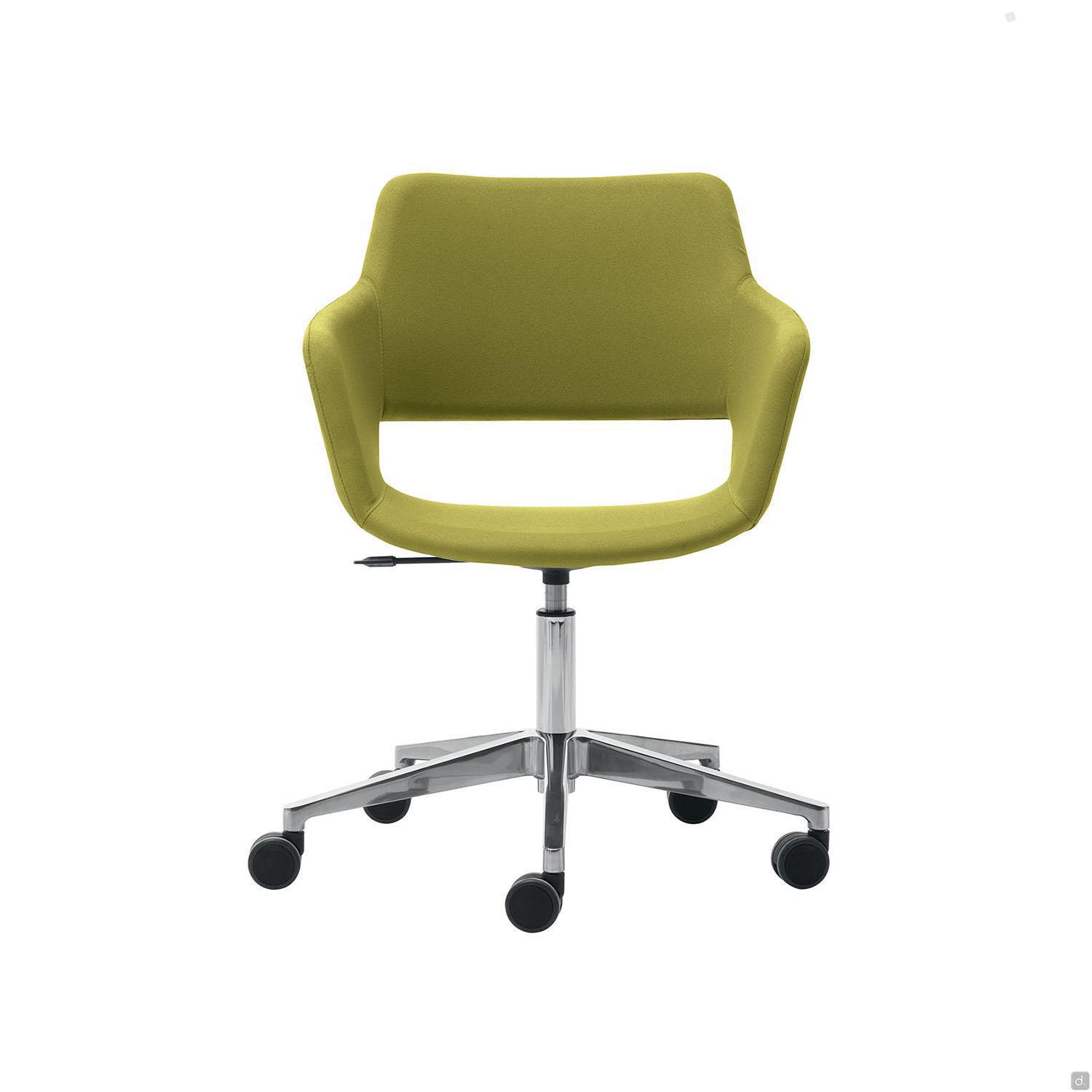Der drehbare Konferenzstuhl Wizard zeichnet sich durch eine bequeme, umhüllende Sitzfläche aus, komplett mit integrierten Armlehnen und einem Fußkreuz aus verchromtem Metall oder einem 4-Stern-Fußkreuz aus Polyamid und Aluminium. Das drehbare und höhenverstellbare Modell verfügt hingegen über ein 5-Stern-Fußkreuz mit Gleitern oder Rollen.In der feststehenden Version ist Wizard mit Beinen aus naturbelassenem Buchenholz, schwarzem oder weißem Metall oder mit einem Kufengestell aus verchromtem und lackiertem Metall erhältlich.