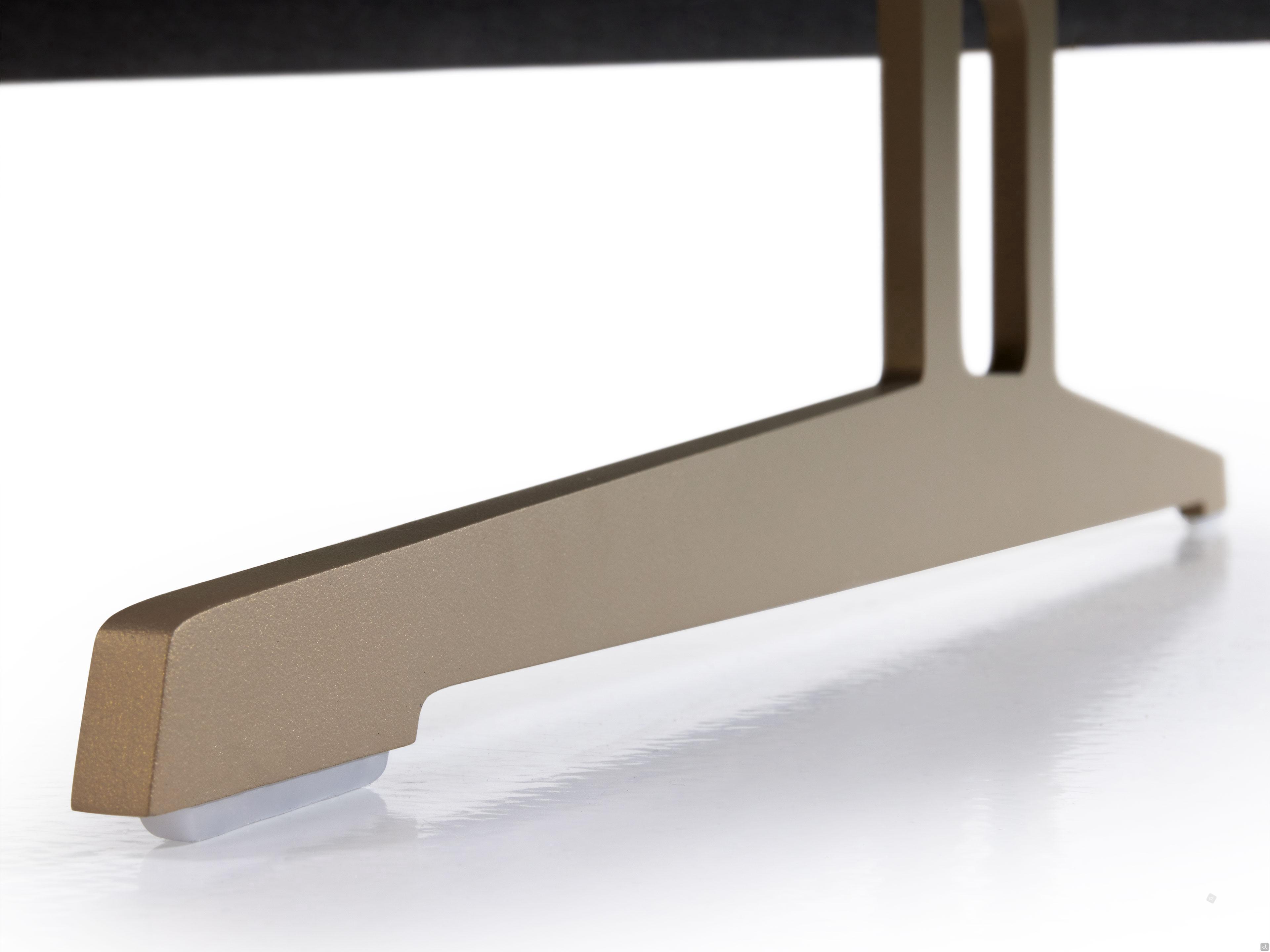 Materialien und Oberflächen- Struktur: Leder Tivano P/3609 Daino (nicht abnehmbar)- Kissen: Stoff Andros col. 1357 (abnehmbare Bezüge)- Füße: Sand Gold lackiertes Metall