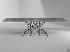 Octa von Bonaldo ist ein eleganter Tisch mit einem zentralen Sternfuß aus geflochtenen Stahlstäben, der an die Form eines stilisierten achtzackigen Sterns erinnert. Der Sternfuß gibt Stabilität und bereichert die Struktur ästhetisch. Das dichte Geflecht kennzeichnet das Gestell und verleiht Vielseitigkeit und ein leichtes Aussehen. Octa Tisch wird nämlich Drehpunkt in eleganten Esszimmern und eleganten Wohnzimmern. Er ist außerdem ideal, um moderne Konferenzräume einzurichten, z.B. in Kombination mit Stühlen mit Bezug aus Leder oder Kernleder.