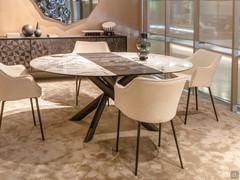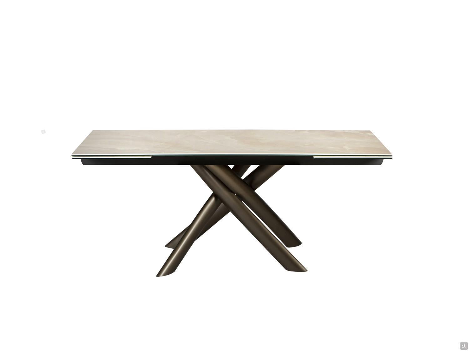 Platte aus Keramik: besteht aus der Verbindung einer 8 mm dicken unteren Glasscheibe und einer 3 mm dicken Laminam®-Oberplatte. Laminam® ist eine sehr dünne Keramikplatte, die mit einer innovativen Technologie hergestellt wird und eine reduzierte Stärke mit hoher Beständigkeit gegen mechanische Beanspruchung, Chemikalien, Verschleiß, Kratzer, tiefen Abrieb und Biegung verbindet. Leicht zu reinigen, resistent gegen Frost, Feuer, Schimmel und UV-Strahlen, ist es ein revolutionäres und umweltfreundliches Material: natürliche Rohstoffe, nachhaltige Technologie, vollständig recycelbare Produkte.