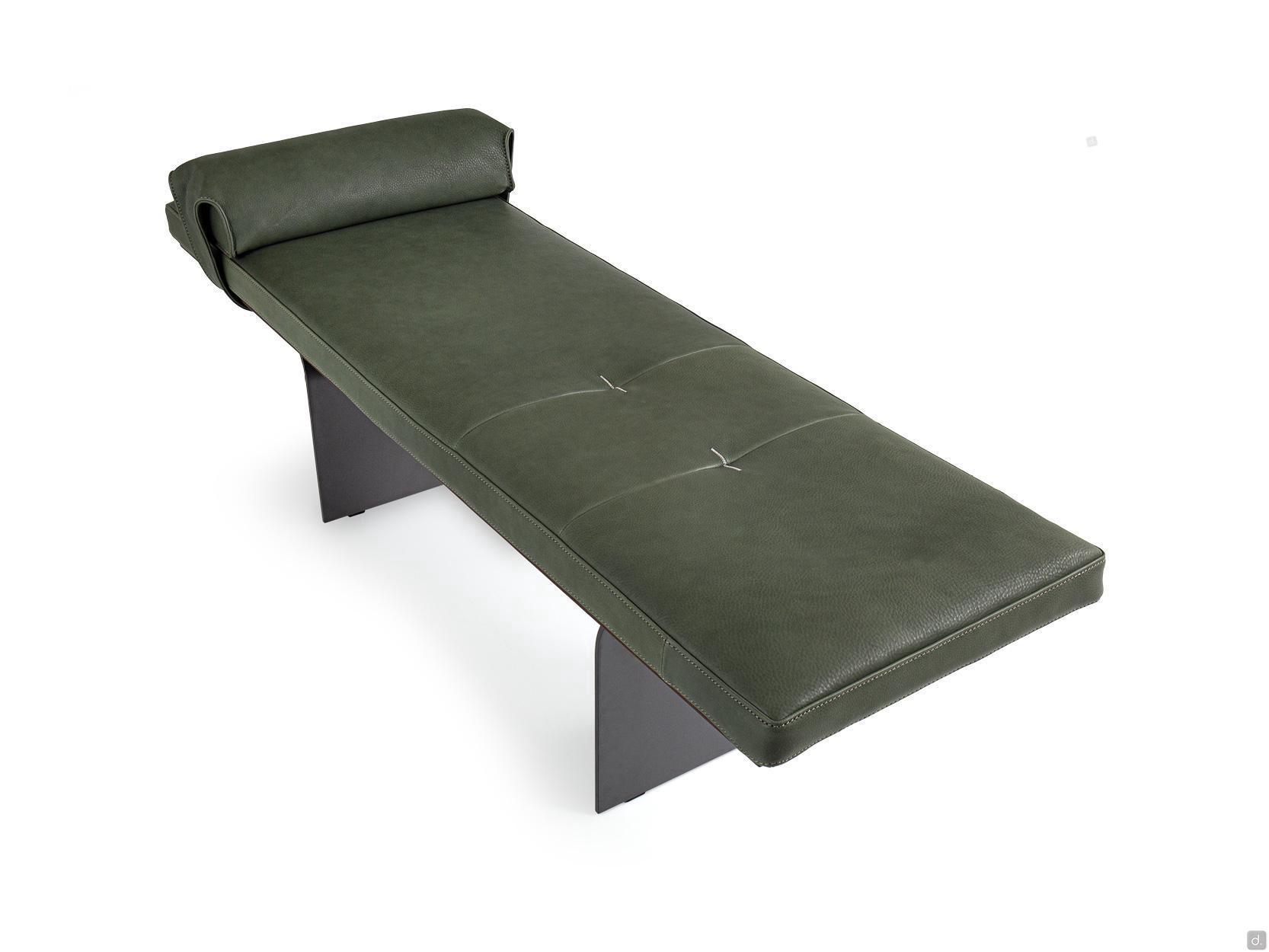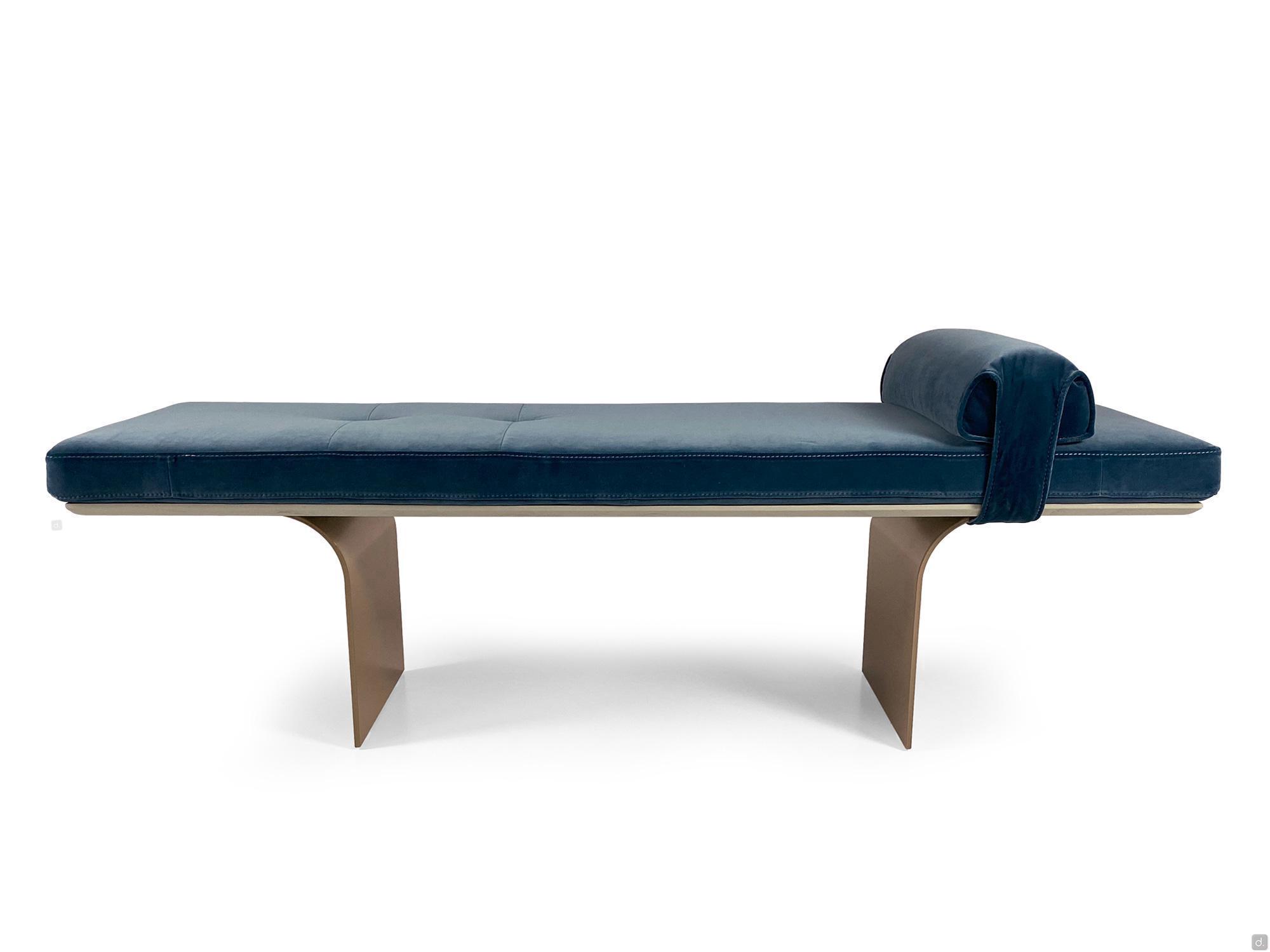 Selma ist eine gepolsterte Design-Sitzbank in Leder, Stoff oder Samt in einer einzigen Größe 150 T.45 cm erhältlich. Die Sitzbank zeichnet sich durch ihr essentielles Design aus, das die extreme Liebe zum Detail hervorhebt.Die Sitzfläche ist mit einer gepolsterten seitlichen Armlehne ausgestattet und mit Zick-Zack-Nähten verziert. Sie zeichnet sich durch den besonderen Schwebeeffekt aus, der durch die Struktur entsteht, die aus einer dünnen Holzplatte aus Esche oder Canaletto-Nussbaum mit zwei gebogenen Metallblättern in verschiedenen Ausführungen besteht.Die Sitzbank Selma passt perfekt in einen eleganten Wohn- und Geschäftskontext. Zu Hause eignet sie sich perfekt für das Schlafzimmer als Nachttisch oder als Sitz für den Eingang oder den begehbaren Kleiderschrank.