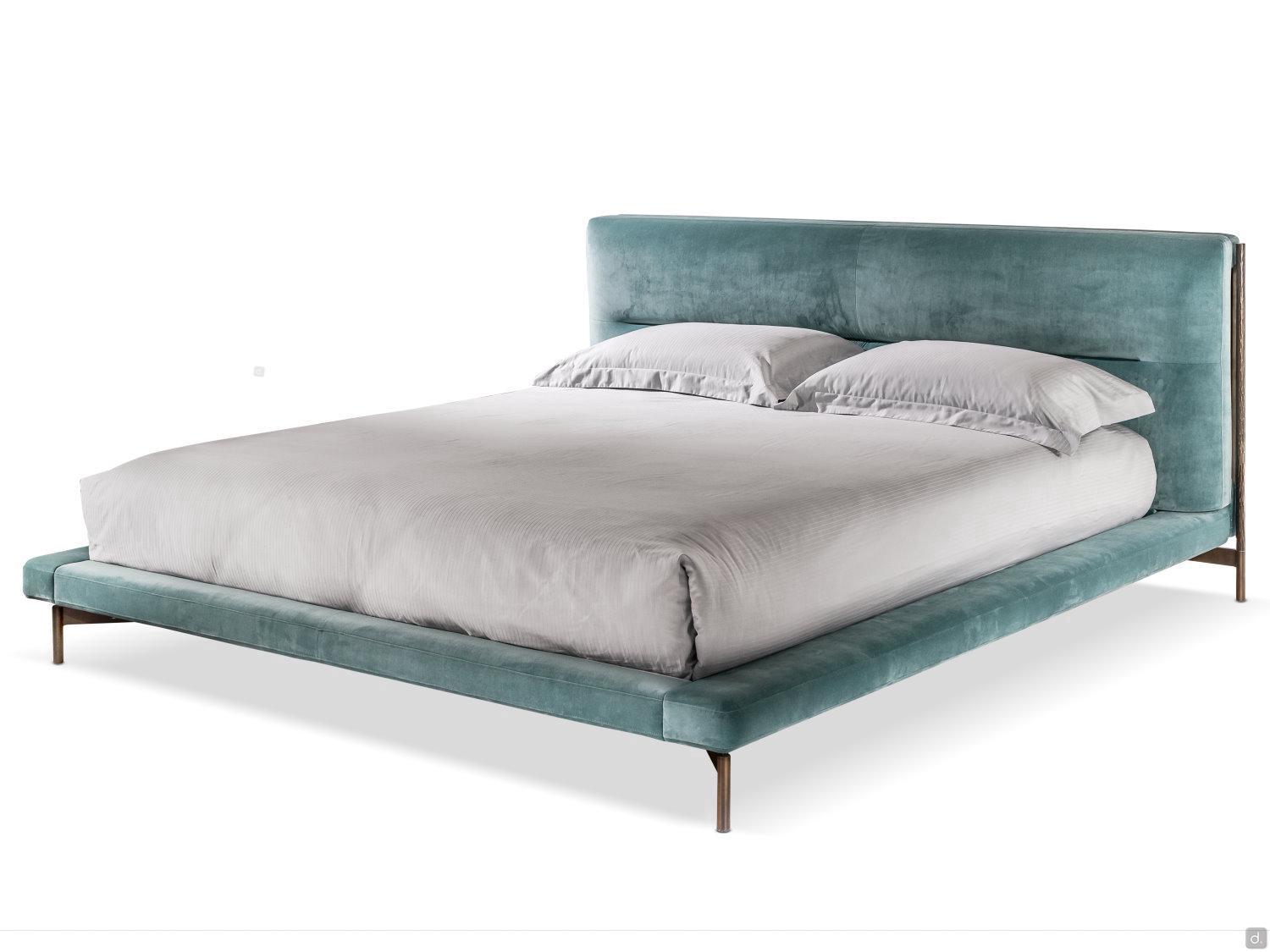 Das Bett ist als Standard-Doppelbett, aber auch als Kingsize- und Superkingsize-Bett für große Hauptschlafzimmer erhältlich. Die Polsterung ist wahlweise in Stoff, Kunstleder, Samt, Echtleder, Velours oder Nubuk erhältlich.