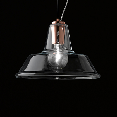 Lagoon ist eine Glas-Hängelampe, transparent, rauchfarbig oder lackiert. Der Lichtschirm aus Blasenglas weist einen vintage Geschmack auf. Die Form erinnert an die Leuchte zum Nachtfischen; dank der Details aus verchromtem Metall wird diese traditionelle Lampe neu interpretiert. Mit seinem zeitgenössischen Design kann Lagoon über rustikale Tische, Arbeitsplatten, Snack-Bar Theke oder in Openspace-Bereiche platziert werden.