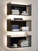 Hinweise zur MontageDie Hängeregale:California werden nicht direkt an der Wand befestigt, sondern über eine 1,9 cm starke schwarze MDF-Rückwand, die bereits mit Montagematerial geliefert wird. Diese Platte wird direkt an der Wand befestigt, während die Regalböden anschließend mit den speziellen Stützstiften der Rückwand an der Platte befestigt werden. Die Rückwand wird von Fall zu Fall entsprechend den Maßen der gewünschten Zusammenstellung geformt: Mehrere Elemente, die nahtlos aneinandergereiht werden, werden dann an einer einzigen Rückwand befestigt. Aus diesem Grund ist es ratsam, Ihre Kompositionswünsche bei der Auftragserteilung anhand einer Zeichnung mitzuteilen. Eine eventuelle LED-Beleuchtung am Rand, die als Option im Konfigurator verfügbar ist, ist in der Stärke der Platte enthalten und erhöht nicht die Tiefe.