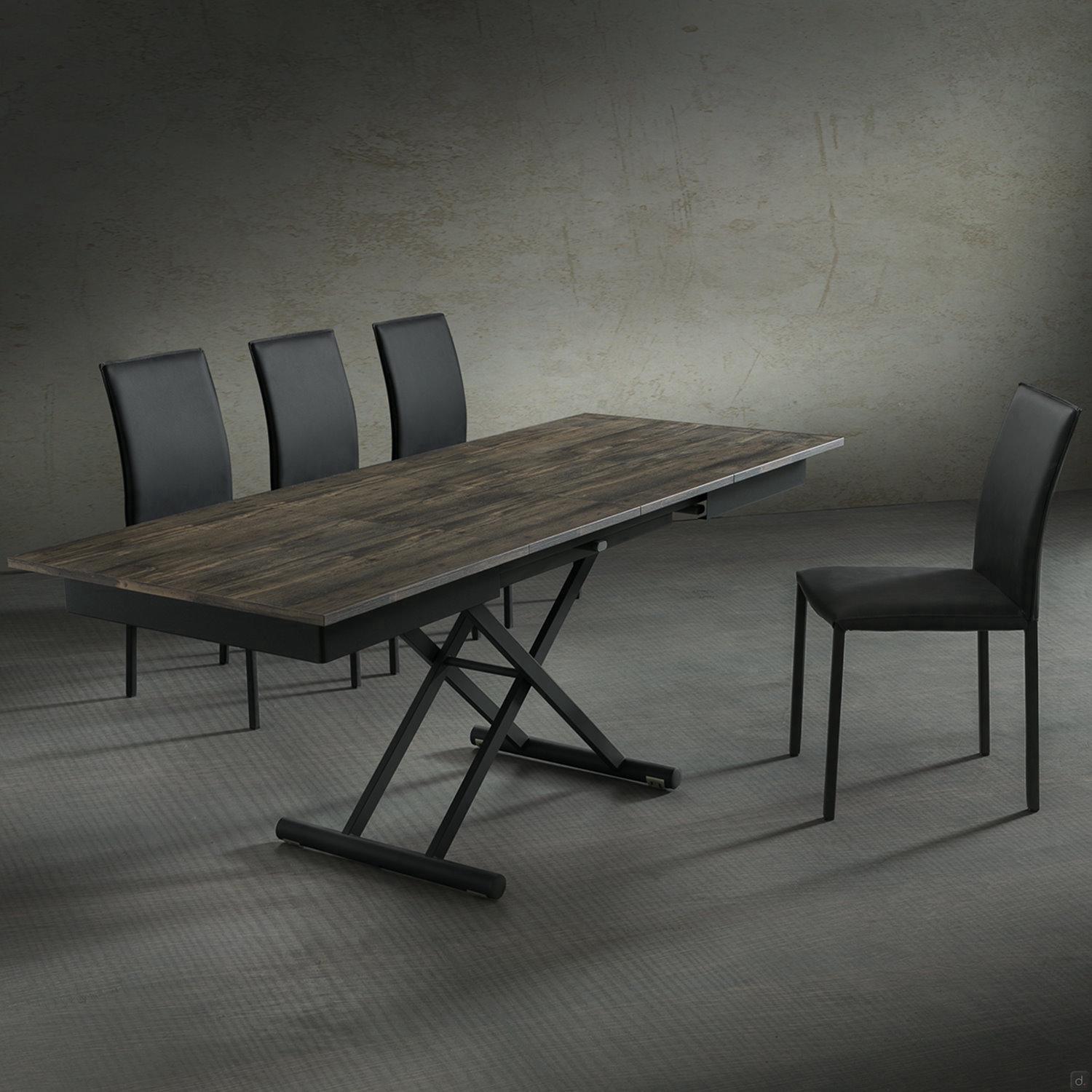 In einen Esstisch umwandelbarer Beistelltisch Cris mit Tischplatte und Innenverlängerungen in einer großen Auswahl an HPL- und Fenix-Laminat- Ausführungen. Der Hebemechanismus ermöglicht eine millimetergenaue Einstellung der Tischhöhe, sodass er bei Bedarf auch ideal als Couchtisch vor dem Sofa eingesetzt werden kann.Das Gestell ist aus anthrazitgrauem, weißem oder londongrauem Metall gefertigt. Cris ist ein Tisch, der sich dank der versenkbaren Rollen an der Unterseite leicht anheben und verschieben lässt und über Verlängerungen verfügt, die ihn in einen geräumigen Esstisch für 8 Personen verwandeln.