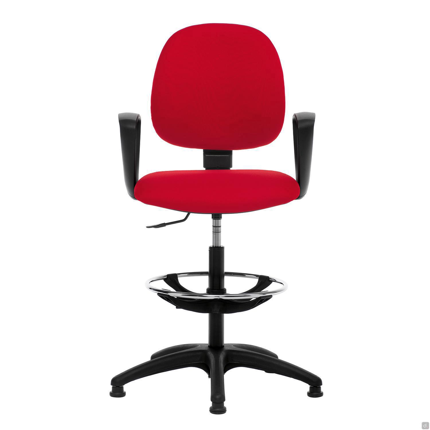 Lybra ist ein hoher Bürohocker mit Fußstütze, der mit oder ohne Rückenlehne und in einer Version ohne Fußstütze erhältlich ist. Alle Hocker haben eine drehbare und höhenverstellbare Sitzfläche und sind bei den entsprechenden Modellen mit einem manuellen Mechanismus zur Verstellung der Rückenlehne ausgestattet.Die Mittelstütze verfügt über einen praktischen, höhenverstellbaren Fußring aus verchromtem Metall für zusätzlichen Sitzkomfort, während das fünfarmige Fußkreuz wahlweise mit Rollen oder feststehenden Füßen erhältlich ist.Der Hocker Lybra ist mit Stoff oder Kunstleder bezogen und passt perfekt zu den gleichnamigen Bürostühlen, die Sie unten auf der Seite finden.