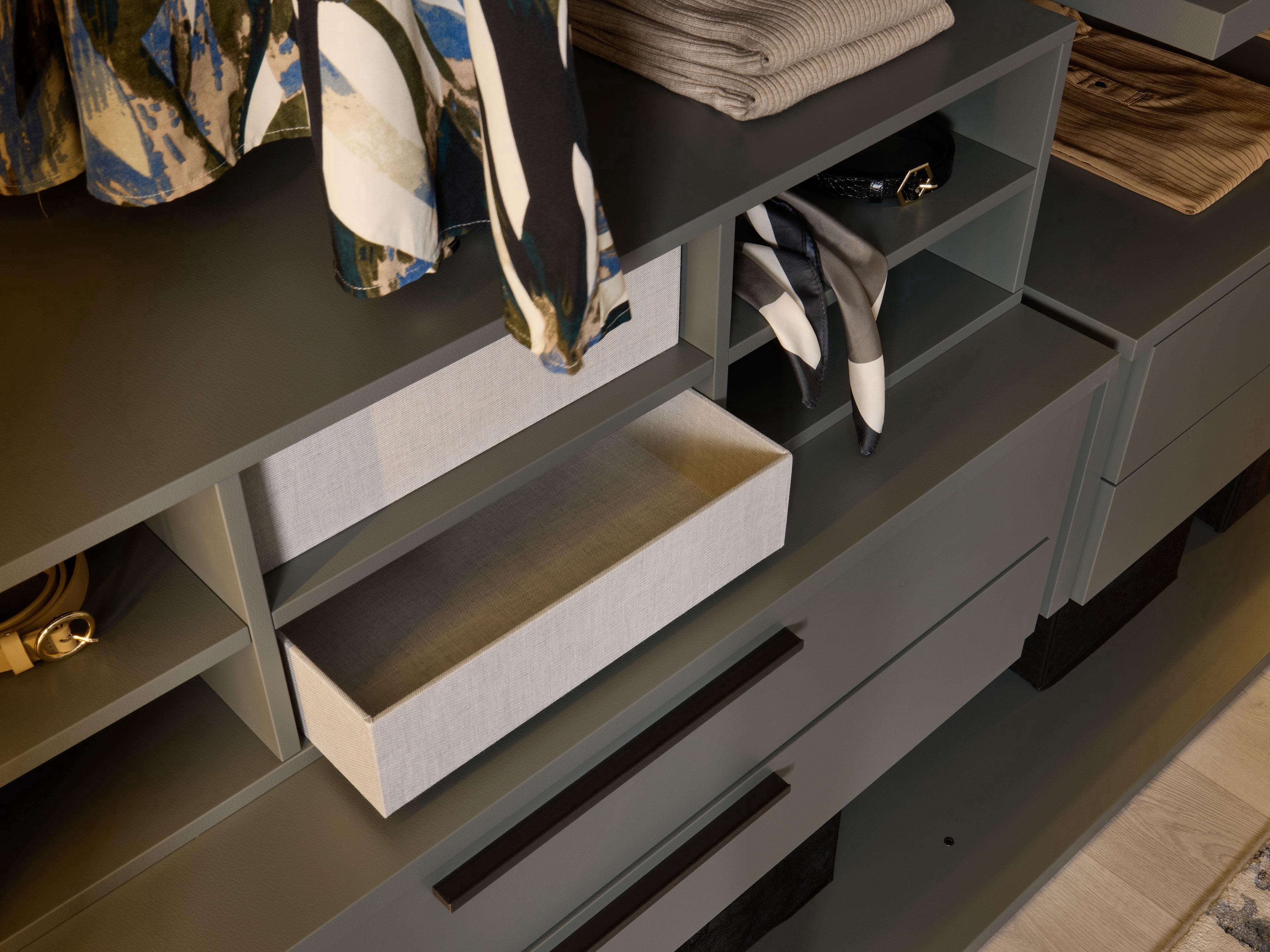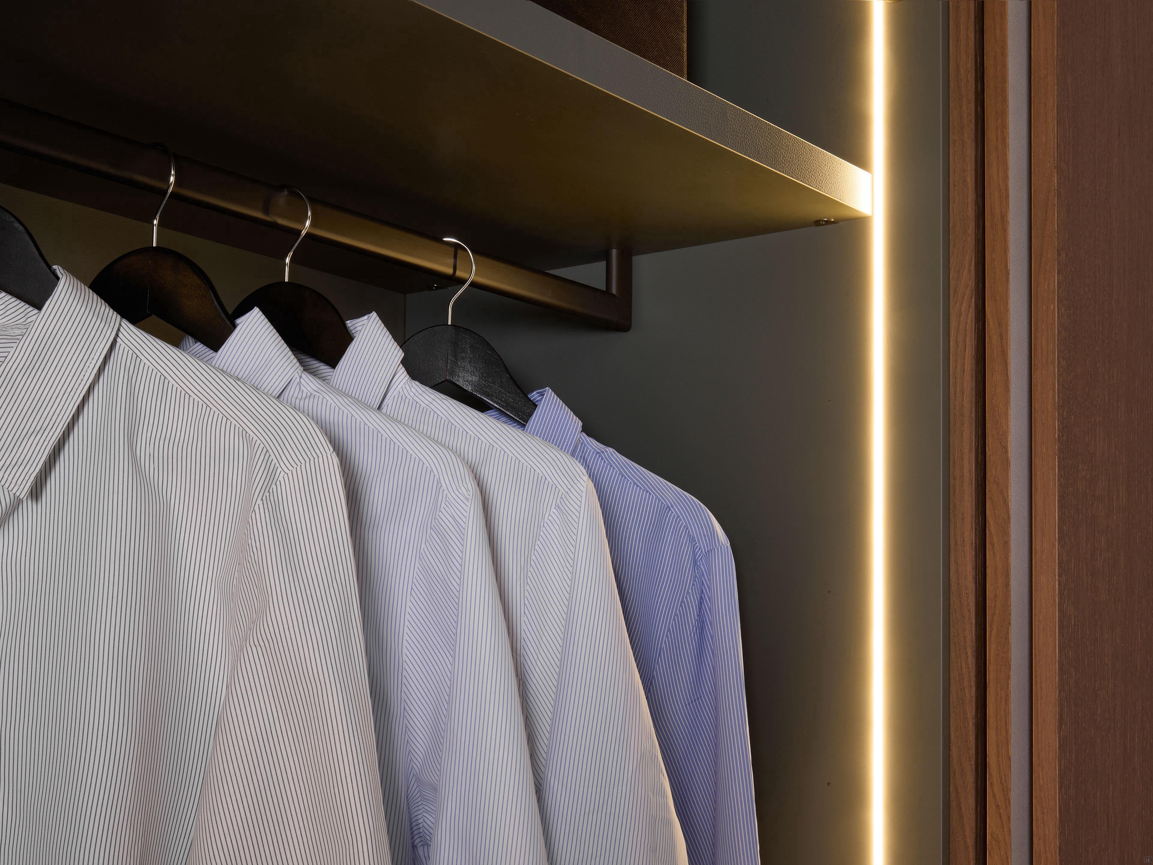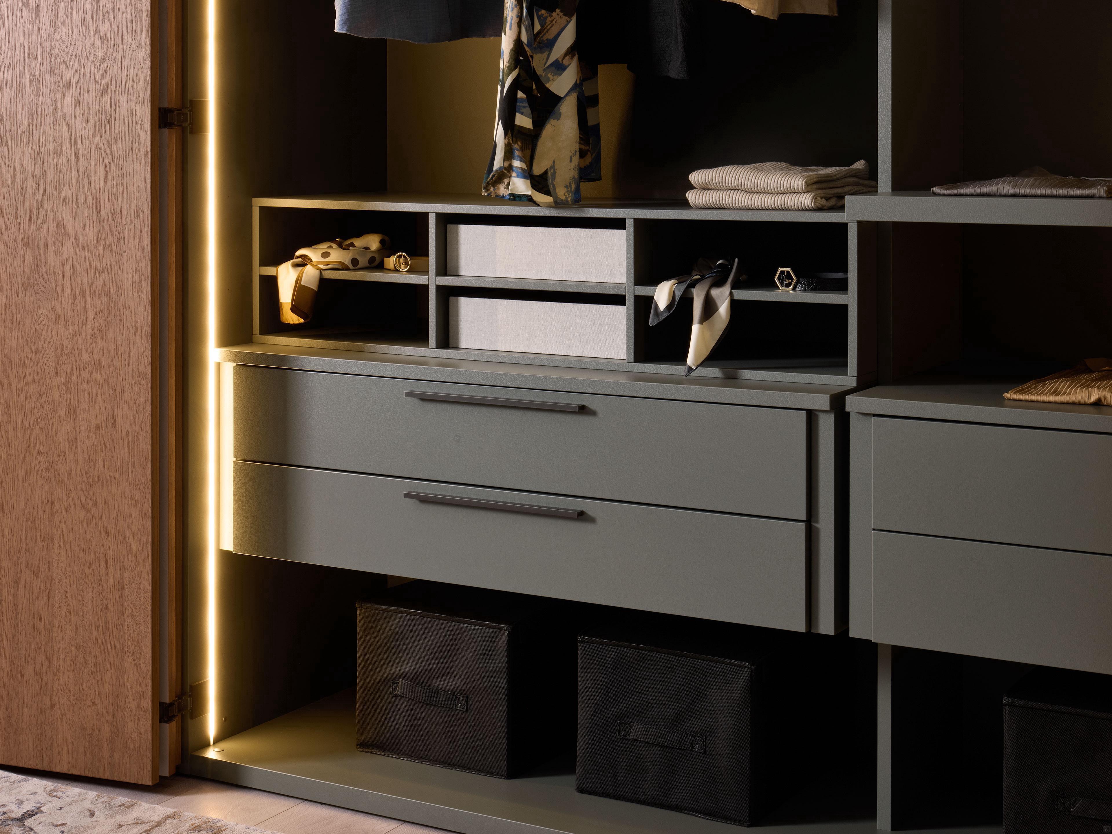 Hängerohre: aus lackiertem Metall in Umbra Shine. Die Schrankmodule werden mit Kleiderbügelrohren in der Standardversion geliefert: im Produkt „Driver Wide Innenausstattung“, das unten auf der Seite verlinkt ist, kann man dann die Premiumversion mit einem quadratischeren Profil wählen.