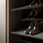 Das Ausziehzubehör ist nur für die Tiefe von 61,2 cm in den Modulen 95,2 / 110,6 cm erhältlich: Rahmen und Schuhablagen sind aus lackiertem Metall in Umber shine. Die Tabletts sind mit einem Soft-assist-Schließsystem ausgestattet und können mit Aufbewahrungsboxen cm 41 t.15 h.5 ausgestattet werden, die optionale Unterteilungen und Uhrenhalter enthalten: alle Elemente sind mit Kunstleder bezogen.