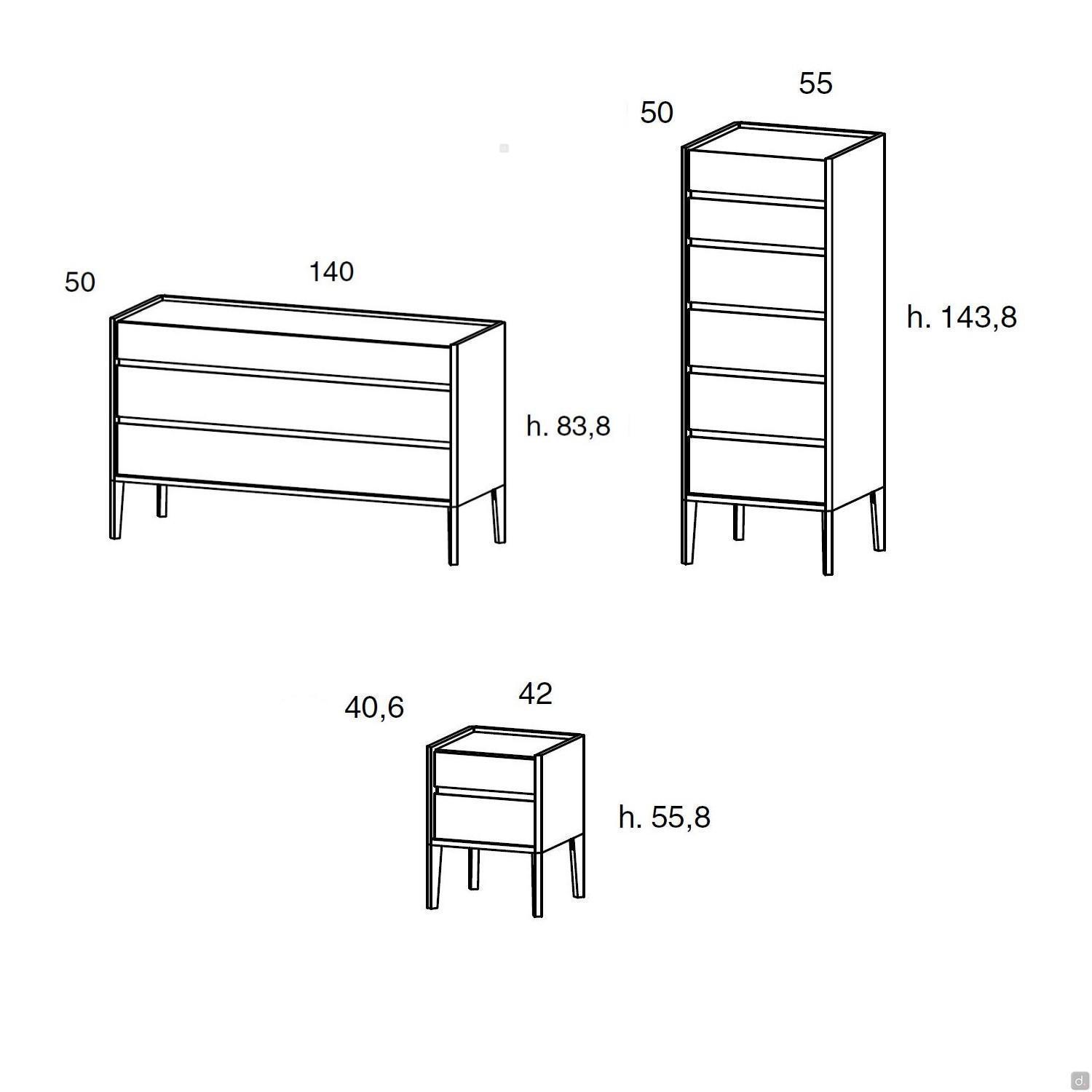 - Nachttisch mit 2 Schubladen: 42 cm