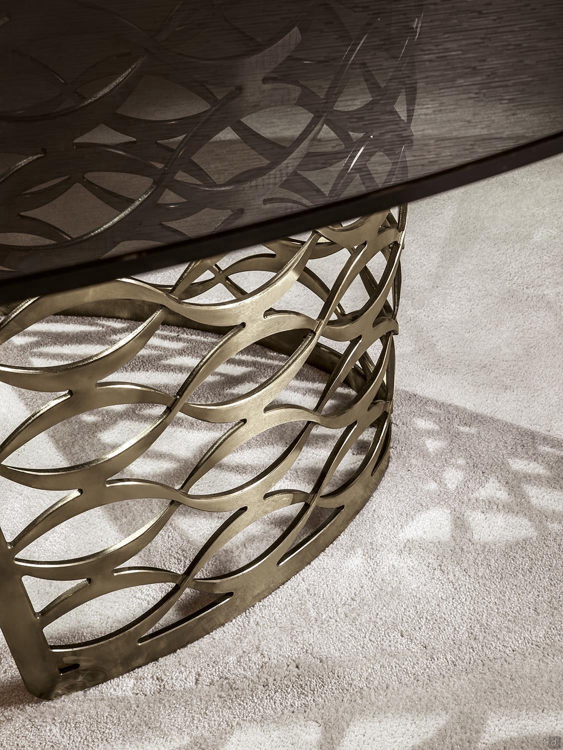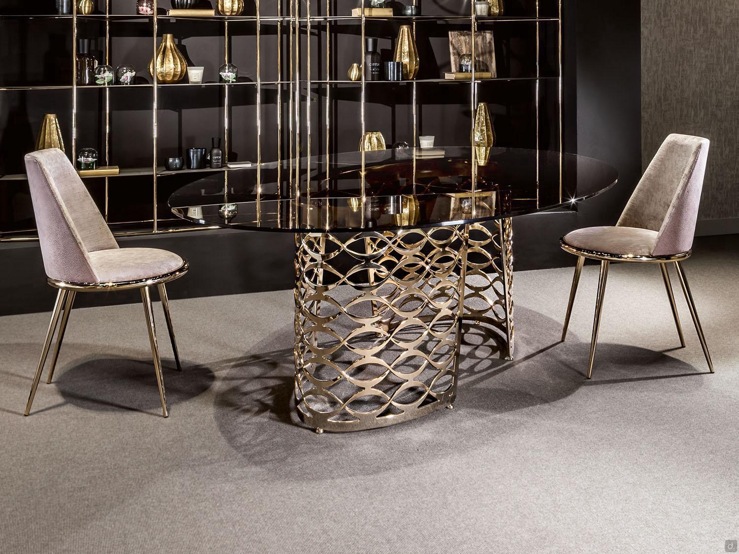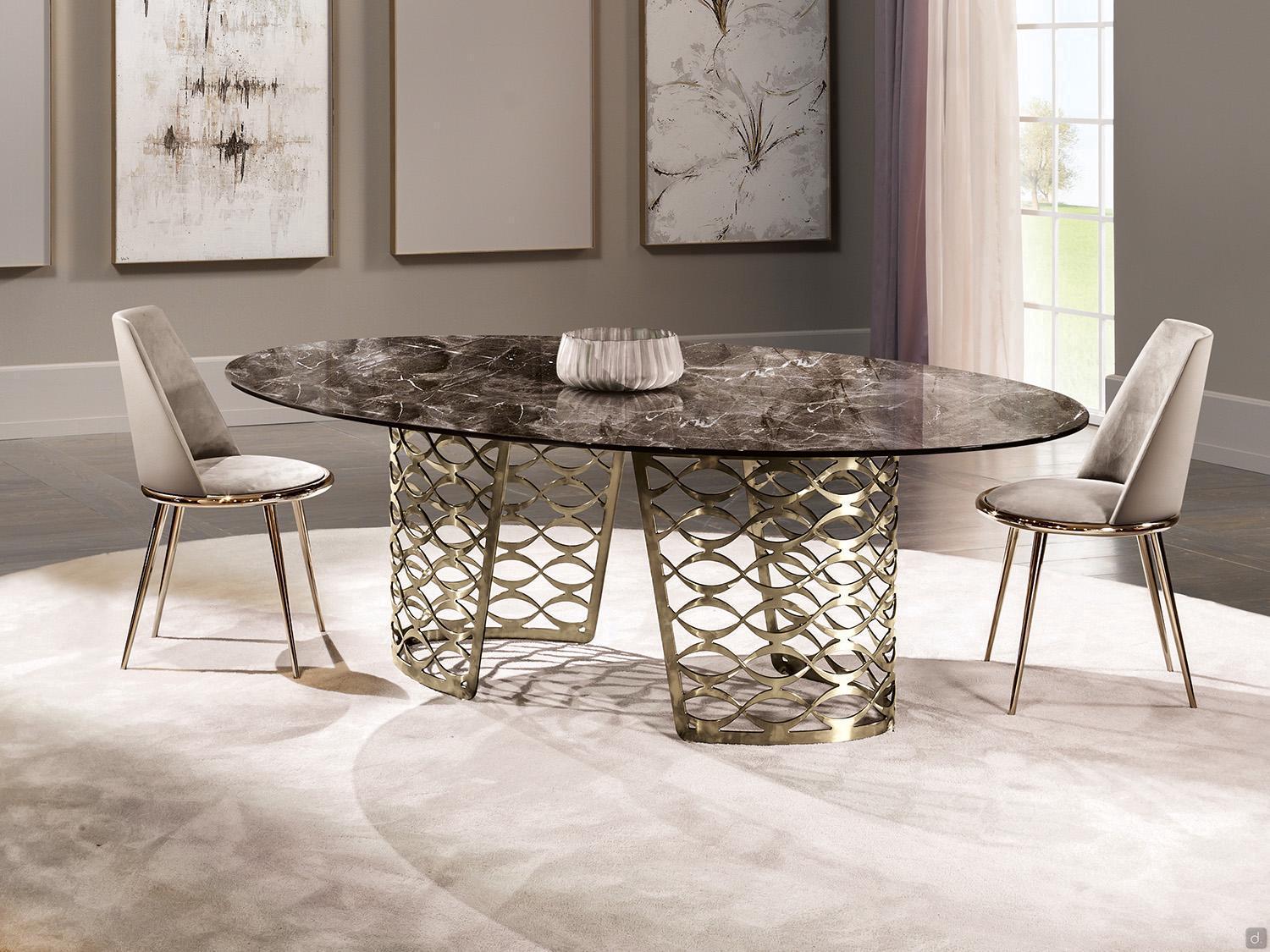 Isidoro von Cantori ist ein Marmortisch mit einem Laser geschnittenen, durchbrochen und gebogenen Metallgestell und einer ovalen Platte. Die Möglichkeit, die Platte auch aus Glas oder Keramik zu haben und aus zahlreichen Oberflächen für den Sockel zu wählen, macht Isidoro zu einem Produkt, das sich durch ein klassisches und formales Design auszeichnet. Die Kollektion, die dem Tisch seinen Namen gibt, umfasst auch einen Schreibtisch und einen Couchtisch für einen koordinierten und eleganten Wohnbereich, der durch eine vage Art-Deco-Inspiration aufgewertet wird.
