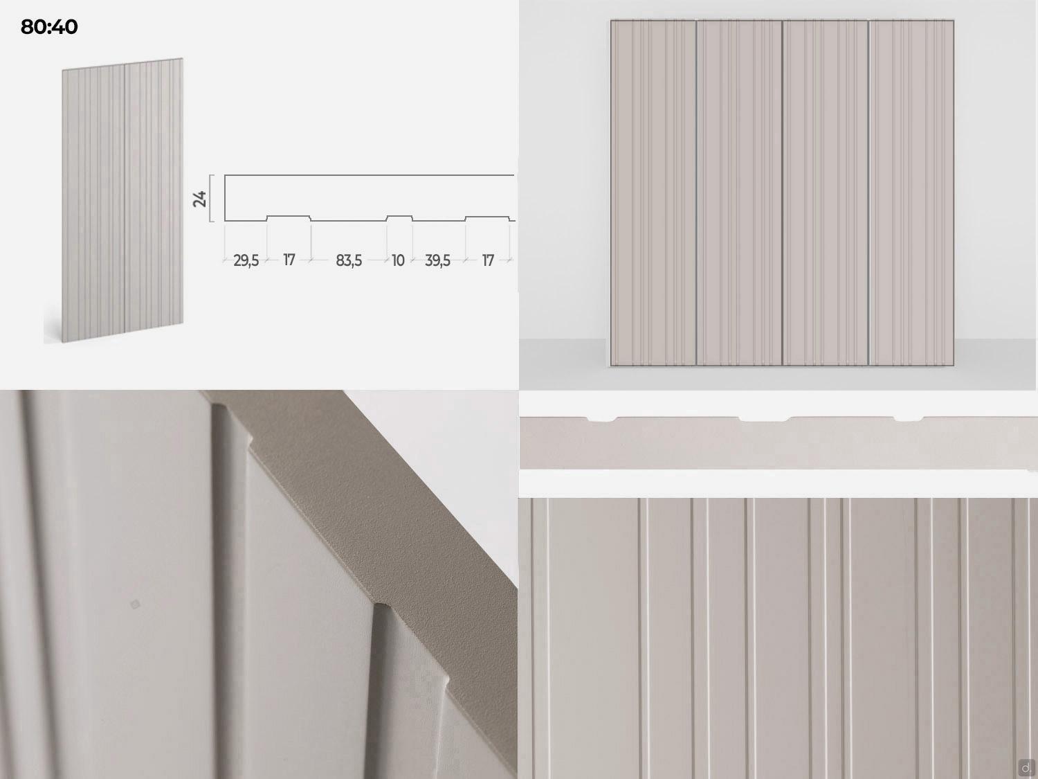 - 80:40 (nur in matt lackierter Ausführung): "U"-Einschnitte cm 1, Dicke 0,2 mit variablem Abstand.