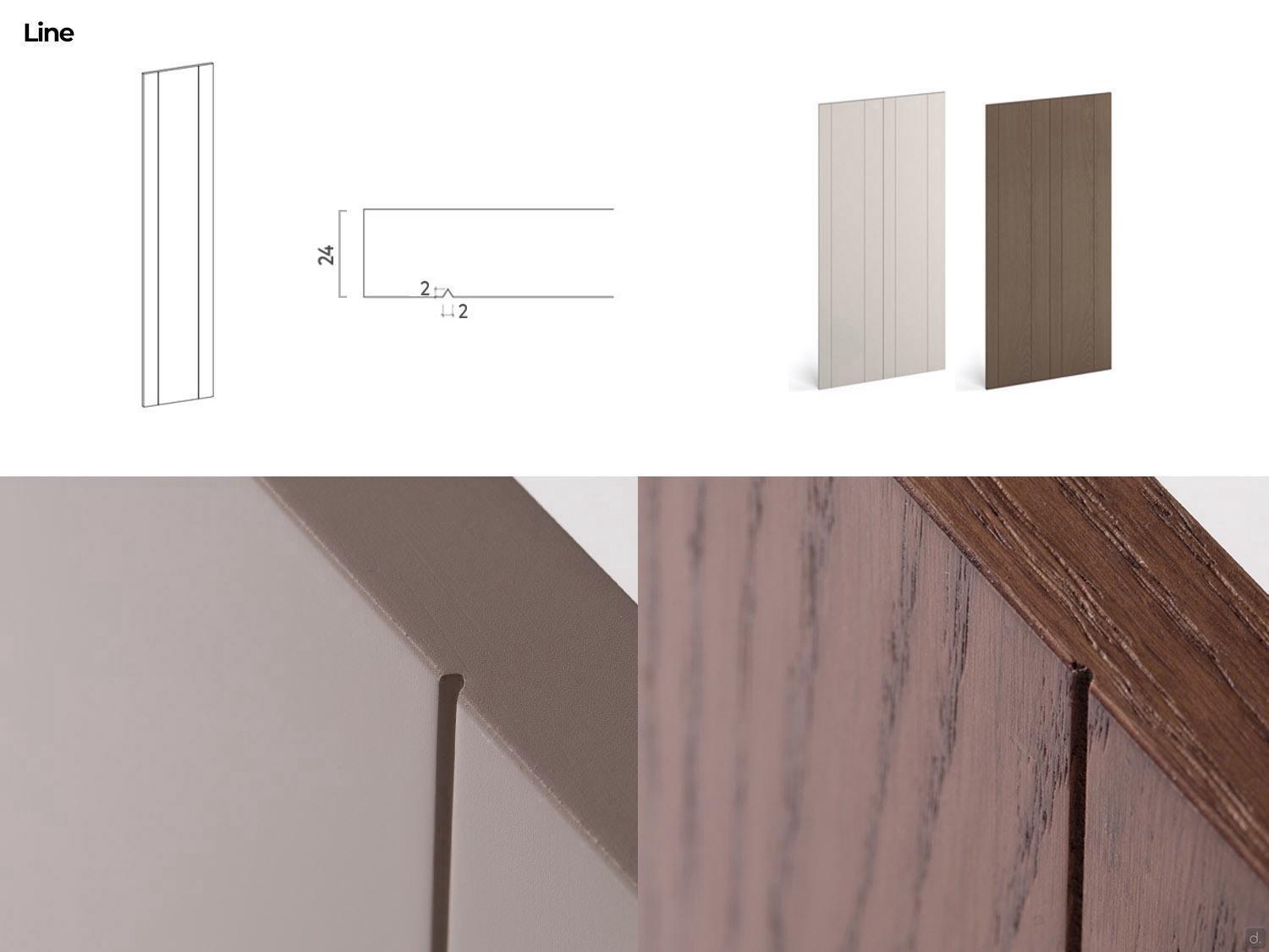 - Line (nur in matt lackierter Ausführung): senkrechte "V"-Gravur, 0,2 cm dick.