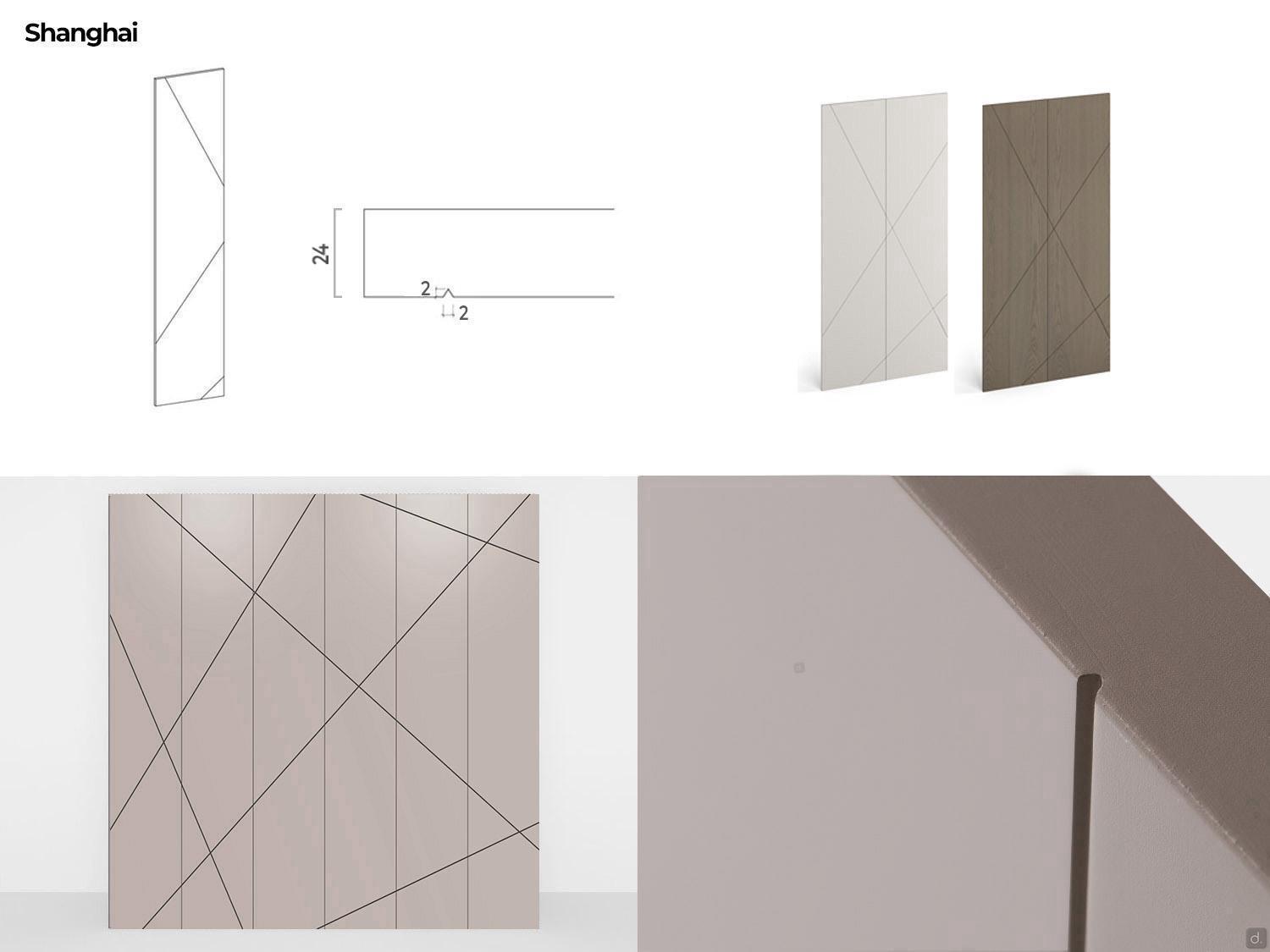- Shanghai (nur in matt lackierter Ausführung): diagonale "V"-Gravur, 0,2 cm dick.