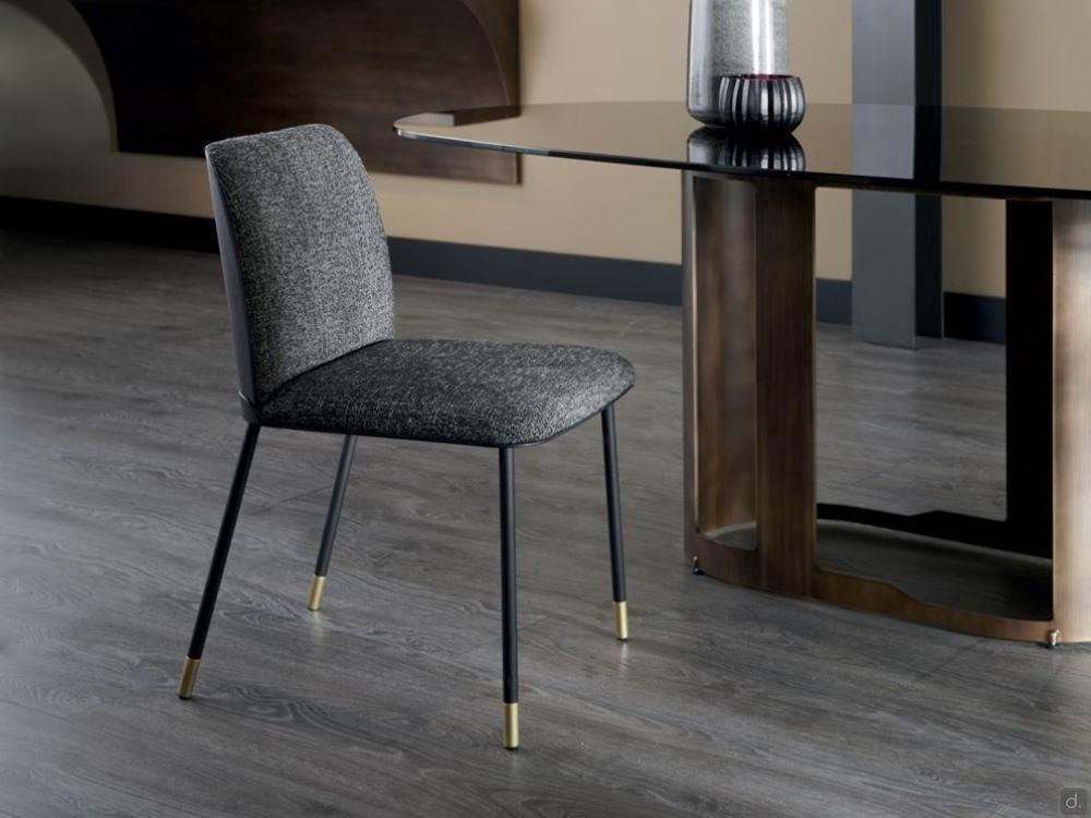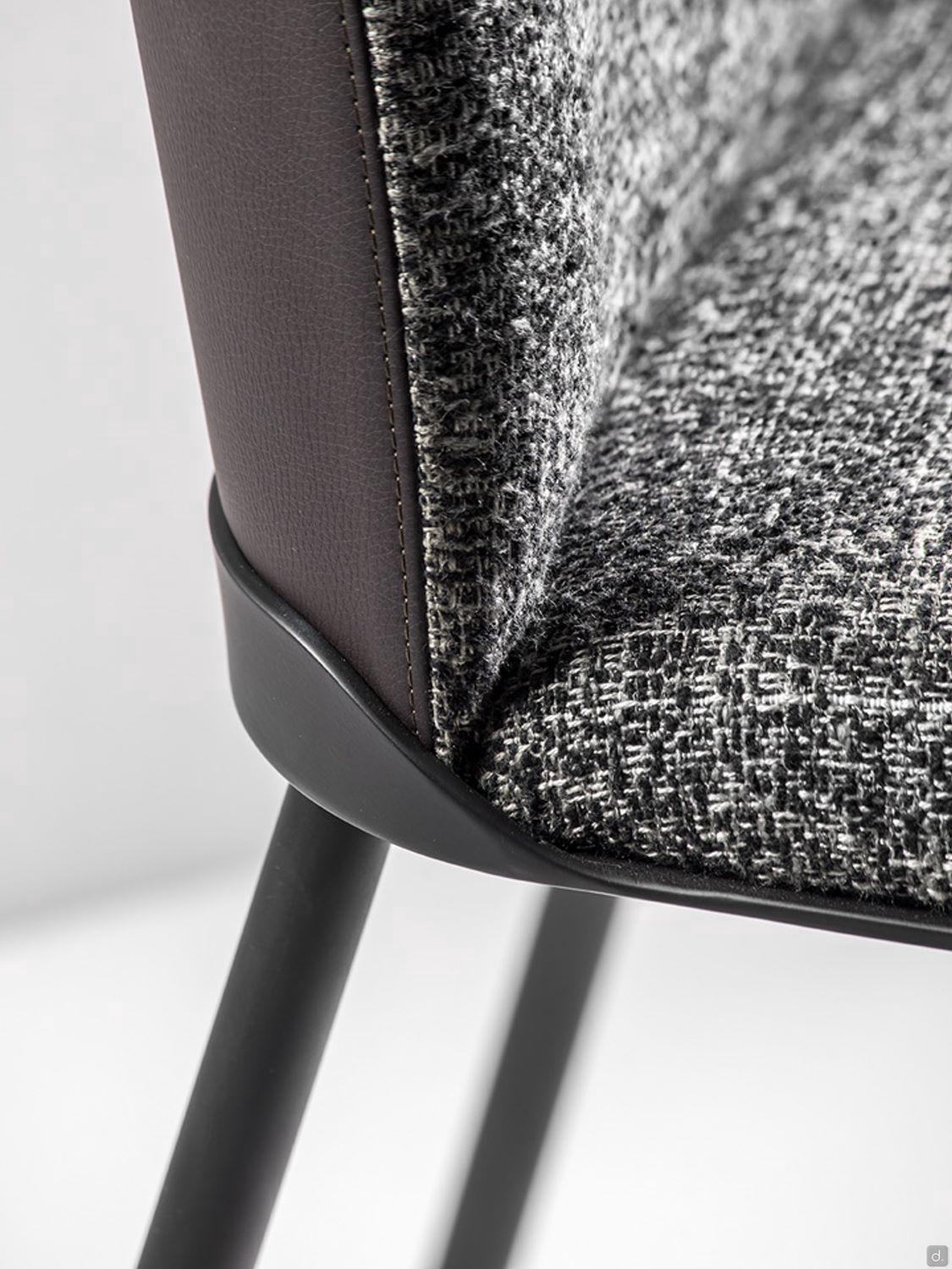 Oasi von Cantori ist ein gepolsterter, zweifarbiger Metallstuhl, der Teil der Oasi-Kollektion ist, von der er die besondere Metalleinfassung an der Basis der Rückenlehne übernommen hat. Die Originalität des Oasi-Stuhls liegt in der Möglichkeit, ihn in einer zweifarbigen Ausführung zu erhalten, bei der die äußere Rückenlehne (erhältlich in Kunstleder oder Leder) von der Sitzfläche und der inneren Rückenlehne getrennt ist, für die eine große Auswahl an Stoffen zur Verfügung steht. Für einen traditionelleren Look ist es jedoch möglich, eine einfarbige Version des Stuhls zu konfigurieren, mit einer großen Auswahl an Leder und Kunstleder.Zur Vervollständigung dieses schlichten, aber eleganten Stuhls, der zu allen anderen Elementen der Kollektion passt, die ihm seinen Namen gibt, finden wir Messingzierleisten an den Beinen: kontrastierende Elemente, die die Aufmerksamkeit auf eine hochwertige Ergänzung lenken und die Sorgfalt von Cantori für Details und Qualitätsausführungen unterstreichen.