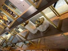 Materialien & Ausführungen Ablagen: - FurnierholzStützen:- Metall pulverbeschichtet, Messing