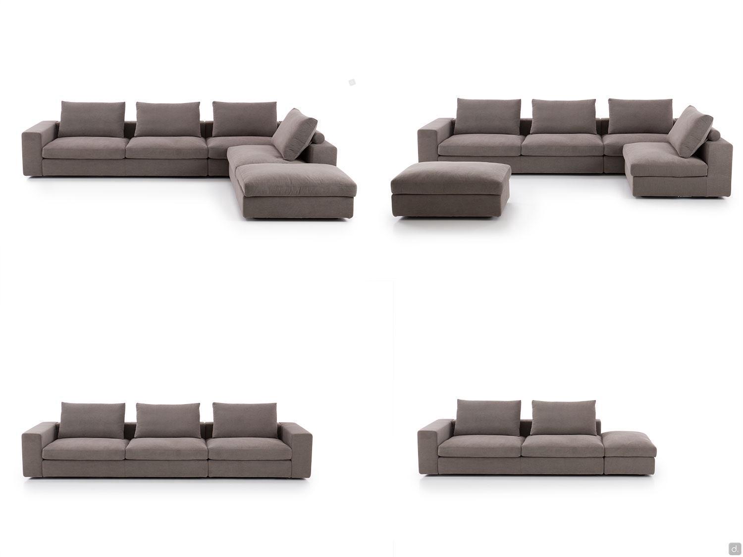 Hyeres Outlet ist ein modernes Sofa mit üppigen, gemütlichen und einladenden Formen. Die bequemen Rückenkissen sind mit weichen Naturfedern gepolstert, während die Sitzkissen sorgfältig aus Polyurethanschaum geformt, in ihrer Dichte differenziert und mit einem Acrylbezug mit Federeffekt umhüllt sind. Zusammen garantieren sie ergonomische Unterstützung und einladende Weichheit. Stilistische Einfachheit und formale Schlichtheit lassen Raum für Komfort und Entspannung.