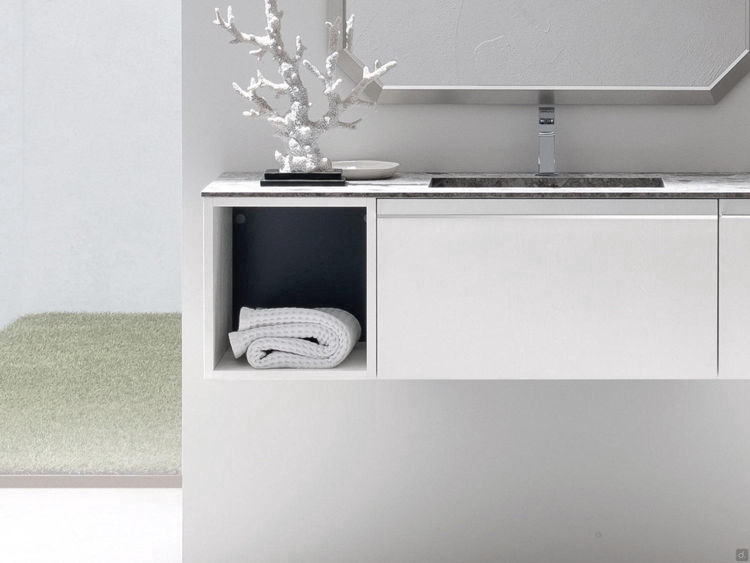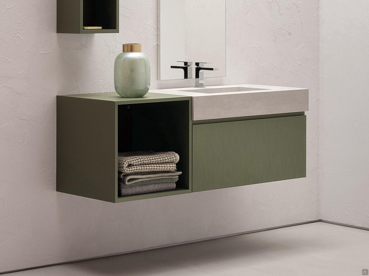 Die Badmöbel sind zu 100% made in Italy hergestellt und werden von einem friaulischen Unternehmen hergellt, das seit den 90er Jahren im Bereich der Badmöbel tätig ist. Ursprünglich auf die Herstellung von klassischen und modernen Badezimmern ausgerichtet, ist er im Laufe der Jahre gewachsen und hat sich im Sanitärbereich national und international einen Namen gemacht. Das Unternehmen zeichnet sich durch die Verwendung von Materialien mit hohen Qualitätsstandart aus, die jedes Jahr neu studiert und erneuert werden, um den neuesten Trends zu folgen. Das Massivholz stammt aus kontrollierten Schnittwäldern und alle anderen verwendeten Materialien sind recycelt oder recycelbar. Das Unternehmen fertigt seine eigenen Modelle, ohne die Bedürfnisse moderner Wohnungen in Bezug auf Raum und Geschmack aus den Augen zu verlieren. Der modulare Charakter der Produkte garantiert zudem eine große Gestaltungsfreiheit. Es ist jederzeit möglich, die Ausgangszusammensetzung mit neuen Zubehörteilen und Geräten zu erweitern.Die breite Kollektion und die angebotene Farbpalette decken eine breite Auswahl von Stilen und Einrichtungen ab: vom raffiniertesten und raffiniertesten Badezimmer bis hin zu den originellsten Formen des Designs, von den weichsten und natürlichsten Farben bis hin zu Pastellfarben. Unterbau-Möbel mit Schubladen oder Schubkästen, wandhängende Schubladen, Säulen zur Aufnahme von Wäsche oder Kosmetikprodukten, Spiegel in den unterschiedlichsten Formen: Die Badmöbel dieser Kollektion sind für jeden Bedarf und jedes Zuhause gedacht.