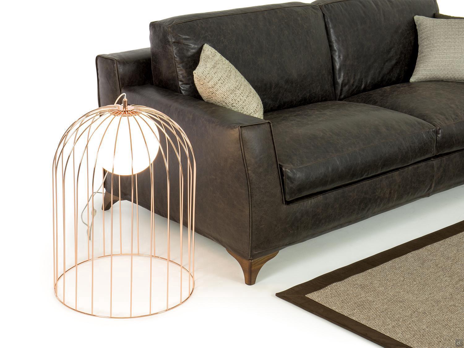 Jengo ist eine originelle Stehlampe aus Metall von HomePlaneur. Sie besteht aus einem Metallgestell mit Käfigform und aus einem runden Lichtschirm aus Blasenglas.Die dünne Konstruktion ist minimalistisch. Obwohl der Käfig die Idee von Nötigung mitteilen könnte, verleiht diese Lampe den Eindruck, dass das Licht frei fließen kann; dadurch entsteht einen faszinierenden Kontrast. Jengo ist eine einzigartige Lampe, die mit Geschmack den Wohnbereich bereichern kann.Der Käfig ist aus verchromtem Metall, ideal für moderne Wohnbereiche; die verkupferte Version lässt sich dagegen mühelos in raffinierte Wohnbereiche einfügen.Im Oberteil des Käfigs wird der runde Lampenschirm aus weißem Blasenglas befestigt, der sehr raffiniert und fein wirkt.