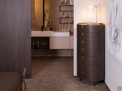 Aries ist ein ovaler Nachttisch aus Holz mit Schubladen aus gebogener Eichenholz, der sich durch weiche Linien auszeichnet, die für eine Vollholzausführung ungewöhnlich sind. Diese Besonderheit, die durch eine sorgfältige und bis ins kleinste Detail durchdachte Verarbeitung sowie die Verwendung hochwertiger Materialien ermöglicht wird, macht ihn zu einem Möbelstück, das Ausgewogenheit und Originalität in das Schlafzimmer bringt.Aries ist in verschiedenen offenporigen Ausführungen erhältlich und kann mit einer farblich abgestimmten oder mit Leder bezogenen Platte versehen werden, eine elegante Lösung mit großer ästhetischer Wirkung. Die Füße, die farblich auf die Struktur abgestimmt sind, bestehen aus massiver Eiche und vermitteln Solidität und Prestige.Aries ist auch als Kommode und Wochenkommode erhältlich, die sich in einem modernen Schlafzimmer kombinieren lassen, das bis ins kleinste Detail aufeinander abgestimmt ist und durch die abgerundeten Formen (die der gesamten Kollektion gemeinsam sind) und die Wärme des Holzes eine gemütliche Atmosphäre schafft.