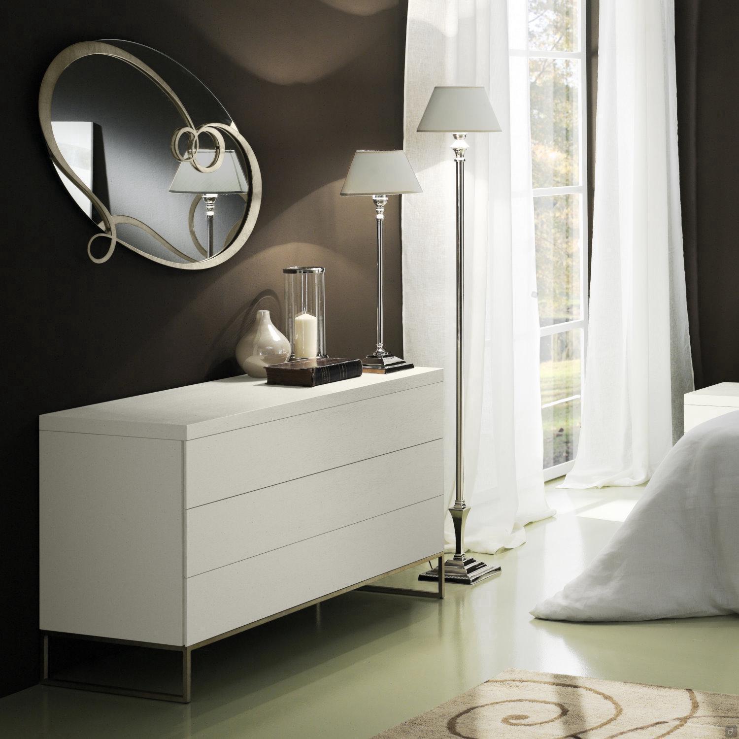 Die Meinung des Innenarchitekten J'Adore ovaler Spiegel mit Metallrahmen passt am besten zu J'Adore Bett aus lackiertem Eisen: der Spiegelrahmen erinnert an die gleiche Ringdekoration am Kopf- und Fußteil des Bettes. Asymmetrische Kurven für ein Schlafzimmer mit einem klassischen und romantischen Geschmack.