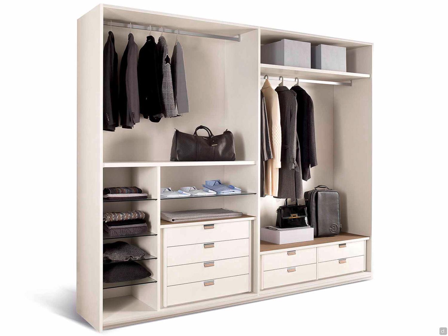 Innenteiler für Dreh-, Schiebe- und koplanare Kleiderschränke T.59,2 Lounge, erhältlich in Melamin, lackiert matt, lackiert metallic oder aus offenporiger Eiche. Ideal zur Vervollständigung der Lounge-Produktlinie. In Kombination mit den Schubladenschränken, bietet er eine elegante und funktionelle Lösung für die Einrichtung Ihrer Garderobe, die in der Höhe auf Maß gefertigt werden kann. Es wird auch mit einer Option angeboten, bei der die unteren Regalböden und der obere Abschlussregalboden mit Vollnarbungsleder bezogen sind (Seil & dunkelbraun).