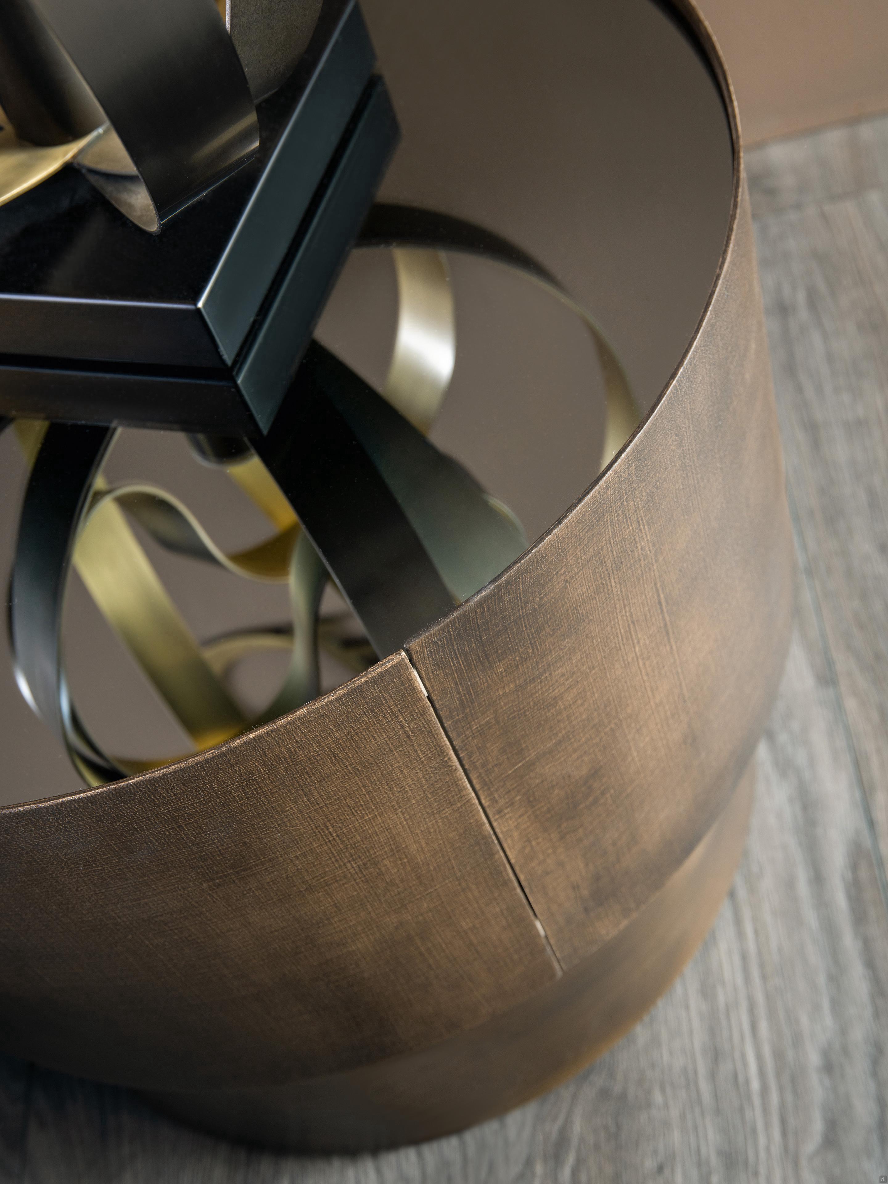 Materialien und AusführungenKorpus:- Metall Platte:- Spiegel bronze / fumèBasis:- Eisen
