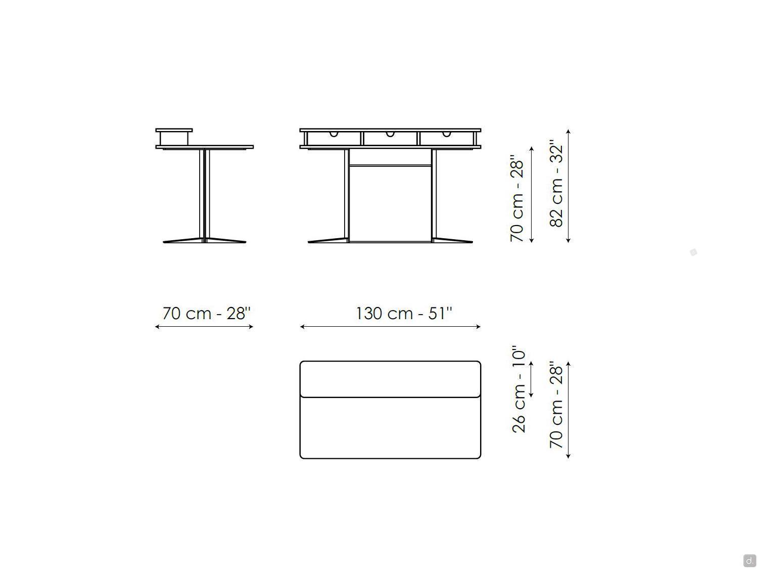 Maße- cm 130 t.70 h.82Bodenhöhe: - cm 70 Stärke der Ebenen:- cm 2Materialien und AusführungenStruktur:- Holz Canaletto NussbaumSchubladen:- lackiertes HolzBasis:- metall
