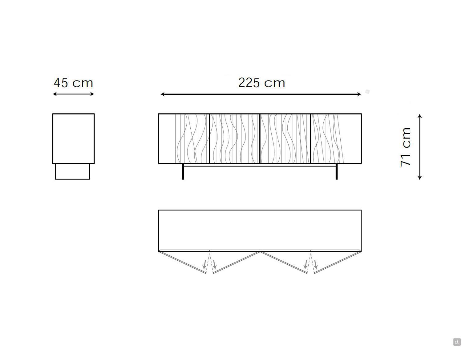 Die besondere Lackierung der Struktur verleiht ihr einen eindrucksvollen Vintage-Effekt mit bemerkenswerter optischer Wirkung, zusammen mit den Gravuren, die die vier Türen, die etwas höher als die Oberseite sind, zu einem Ganzen verbinden, um ein einfaches Öffnen ohne Griffe zu ermöglichen. Die beiden Innenfächer aus melamin Holz enthalten zwei Regalböden in derselben Ausführung, die neben viel Stauraum eine maximale Tragkraft von 10 kg gewährleisten.