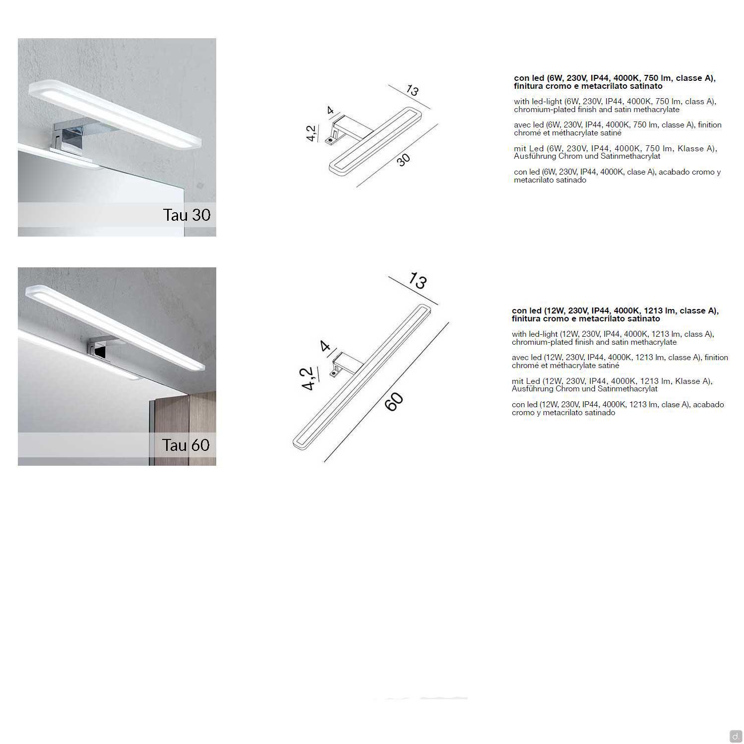 - Tau 60: verchromt; mit Led 12W, 4000K, 1213 lm; 230V, IP44, Klasse A; cm 60 t.13 h.4,2