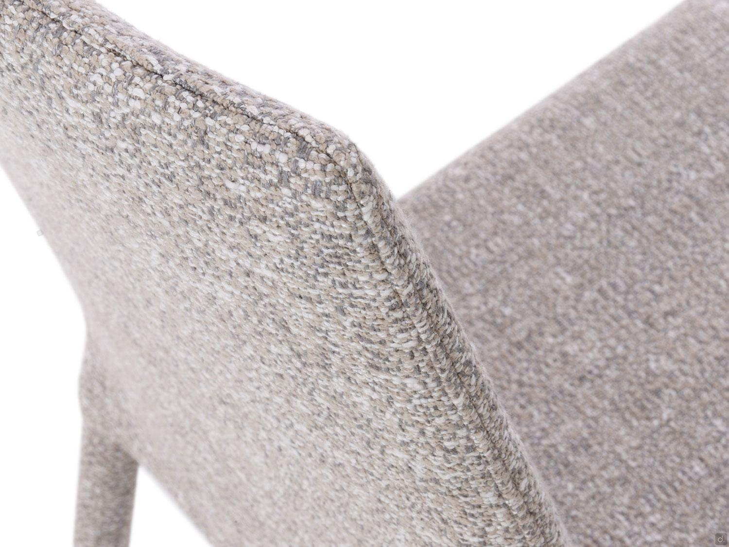 Akira 2.0 outlet ist ein Set aus vier gepolsterten Stühlen, die sich ideal für die Begleitung wichtiger Tische im Wohn- oder Essbereich eignen. Die extreme Vielseitigkeit in der Positionierung wird durch ein sehr einfaches und lineares Design ermöglicht, das durch den eleganten Bezug aus einem gewebten Melange-Stoff mit einem Hauch von Bouclè-Effekt noch verstärkt wird. Die handwerkliche Verarbeitung erreicht ein sehr hohes Qualitätsniveau, das sich in der Verarbeitung der Nähte sowie im Design und den ergonomischen Details des Stuhls widerspiegelt.