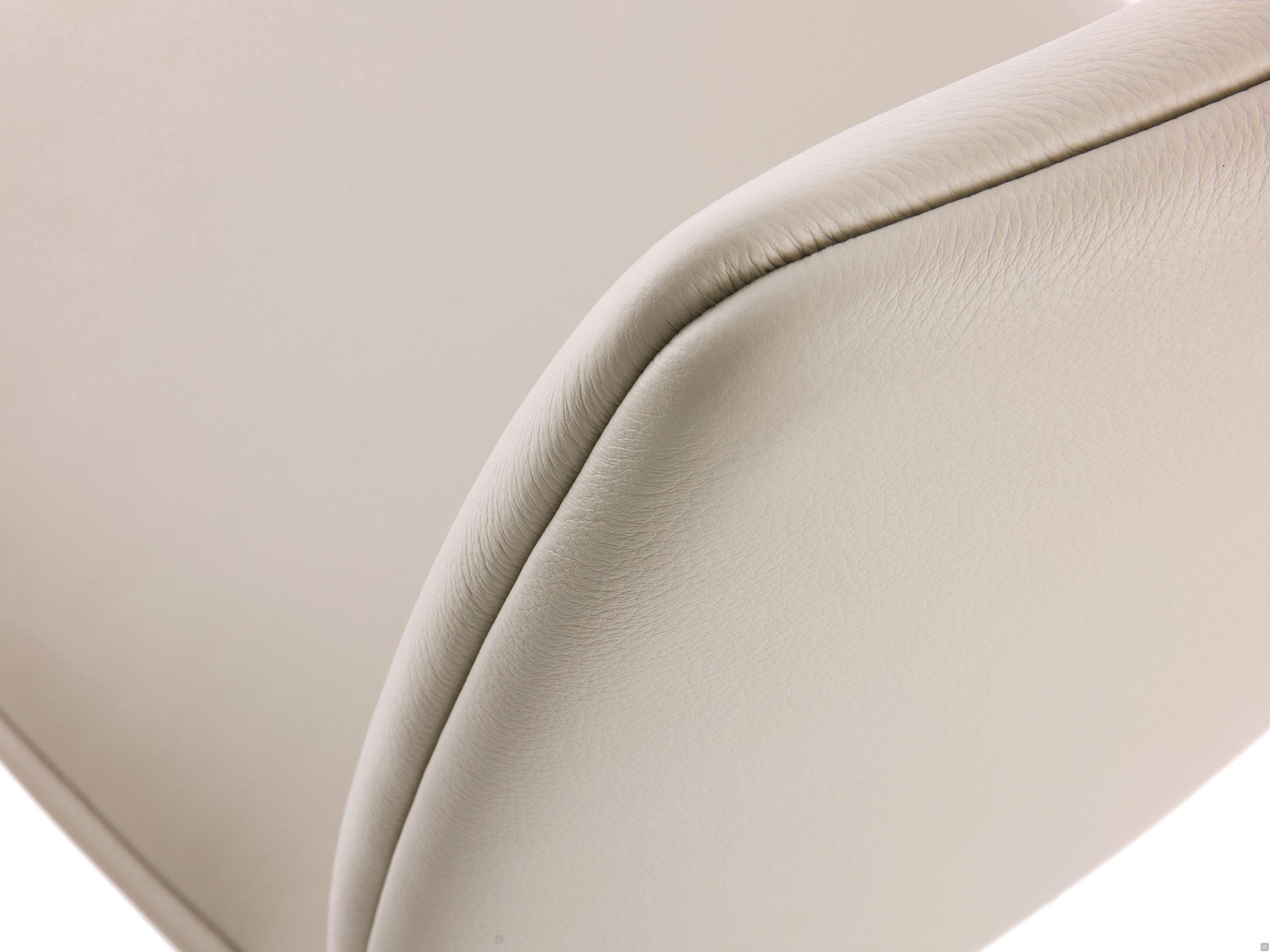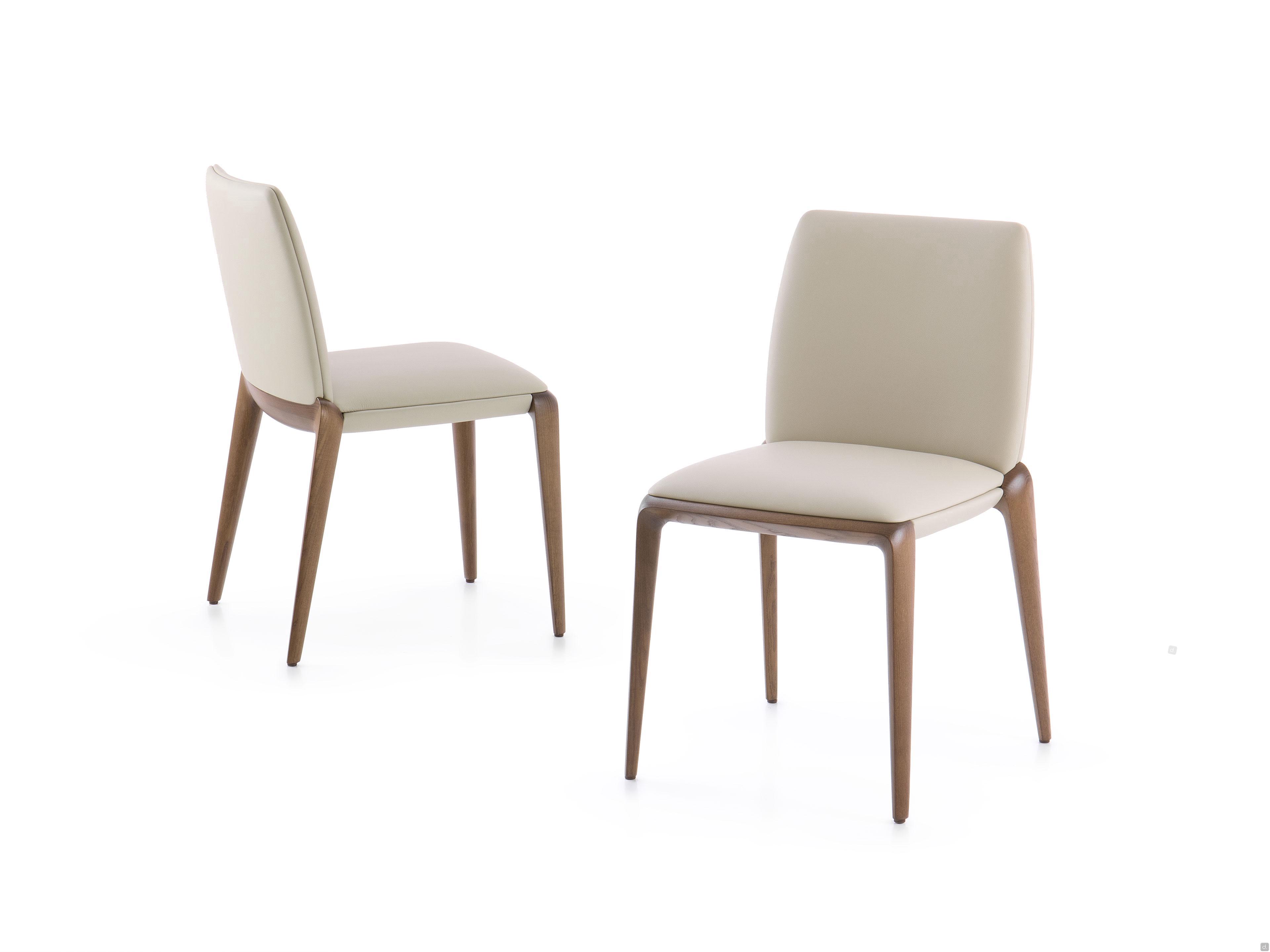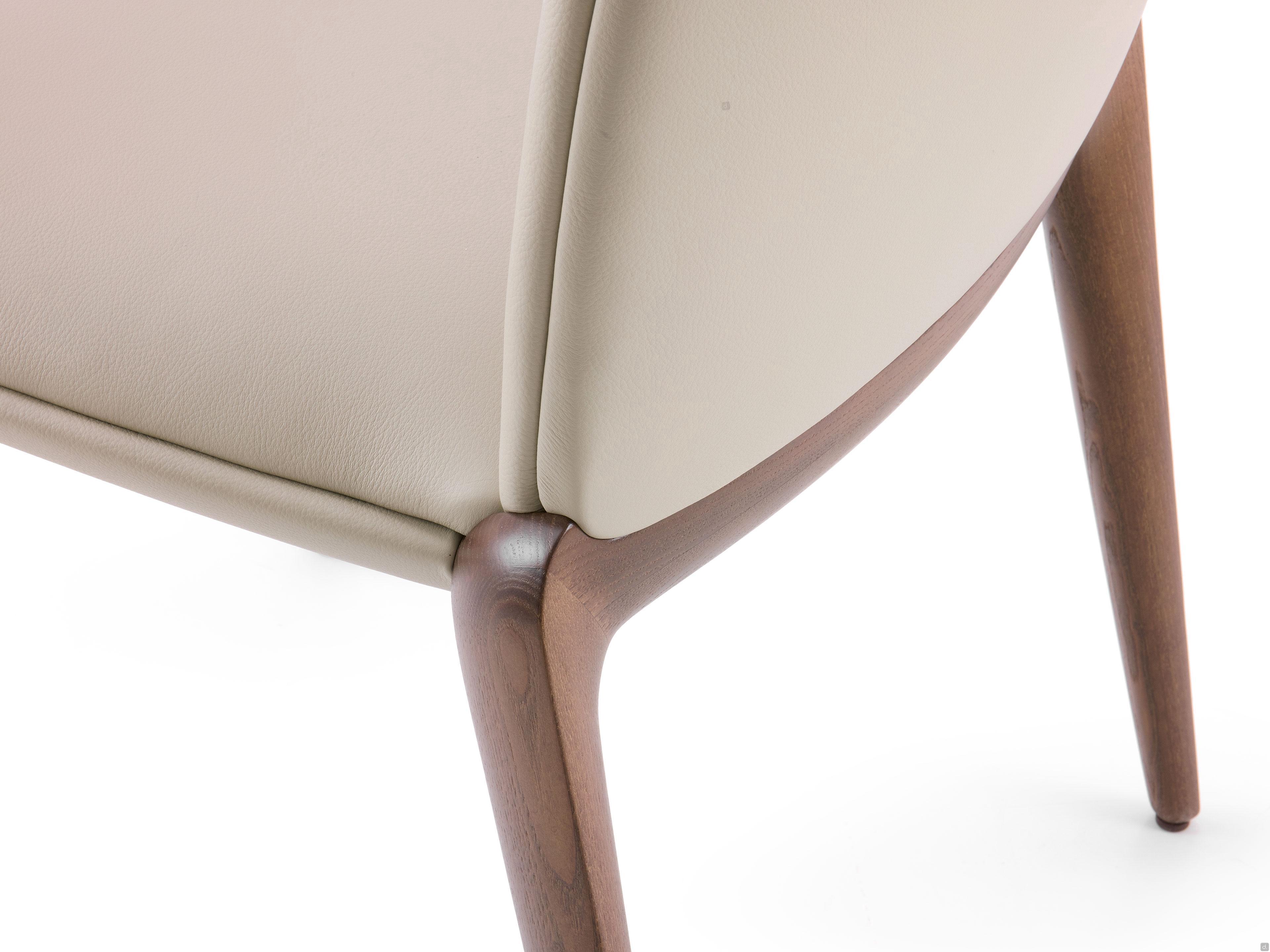 Midday Outlet ist ein Set aus 4 gepolsterten Stühlen mit Beinen aus Massivholz, die sich durch klare Linien und einen zeitlosen Stil auszeichnen. Die Besonderheit dieses Stuhls sind die spiralförmigen Beine und die nicht ebenen Oberflächen, wertvolle Details, die von einer gekonnten Holzverarbeitung zeugen. In einem perfekten Verhältnis von Harmonie und Proportionen fügt sich das Holz, das aus jedem Blickwinkel des Stuhls sichtbar ist, in die gepolsterte und mit edlem Leder bezogene Sitzfläche ein. Die Midday-Stühle mit ihrer zeitlosen Eleganz eignen sich perfekt für die Einrichtung von Wohn- oder Esszimmern mit raffiniertem Geschmack.