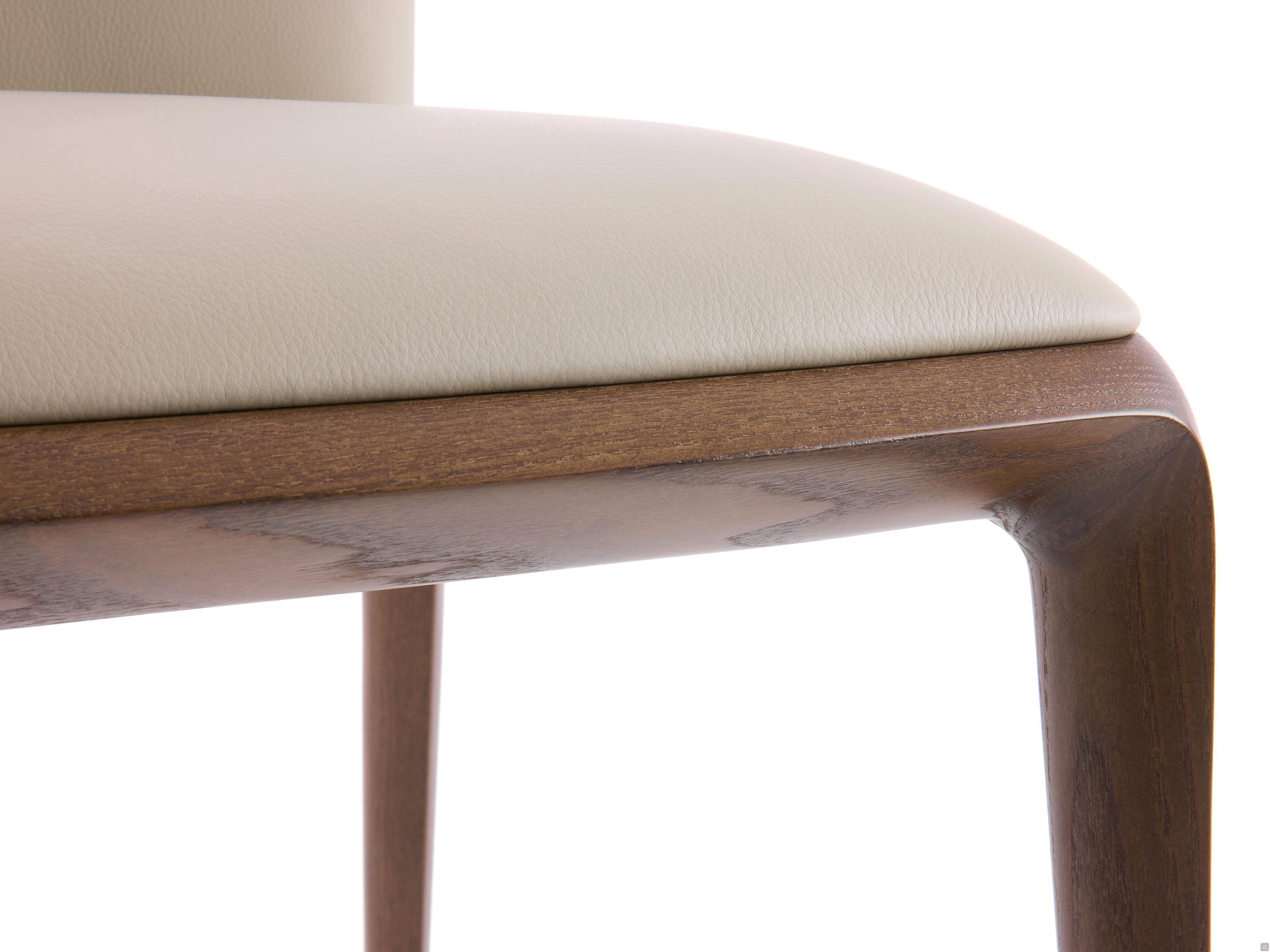 Merkmale eleganter Stuhl mit spiralförmigen Holzbeinen fachmännisch aus massivem, gebeiztem Eschenholz gefertigt gepolsterter Sitz und Rückenlehne mit hochwertigem Leder bezogen Qualität Made in Italy - Design und Herstellung