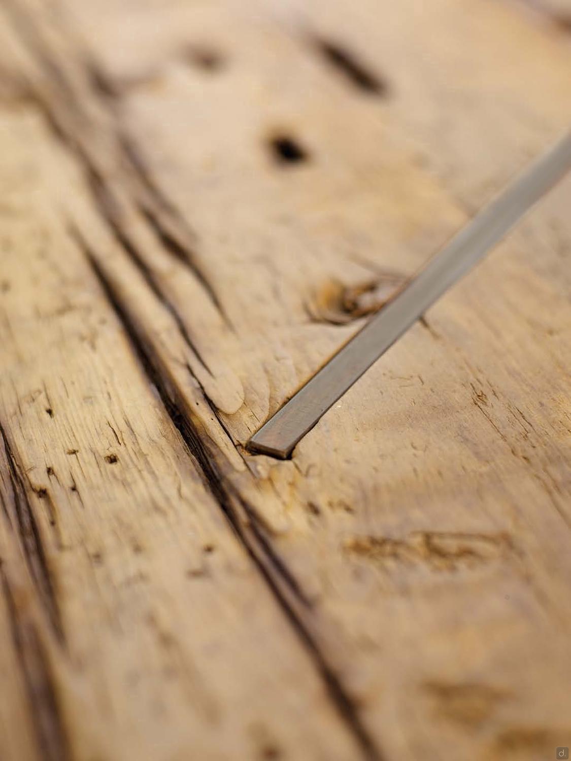 Jahrhundert Holz ist das einzige Holz, für das keine Bäume gefällt werden. Seine Verarbeitung erfordert jahrzehntelange Erfahrung im Tischlerhandwerk und in der Restaurierung sowie eine beträchtliche Anzahl von Arbeitsstunden. Erreicht wird dies durch die sorgfältige Auswahl von seltenem und kostbarem Holz aus den Balken und Konstruktionsbrettern alter Gebäude, die mit handwerklichem Geschick restauriert und in Form gebracht werden, wobei die natürliche Patina erhalten bleibt, die durch die mehr als 100 Jahre andauernde Bewitterung entstanden ist. Die wichtigsten verwendeten Hölzer sind Ulme (70%), Fichte (20%) und Eiche (10%).
