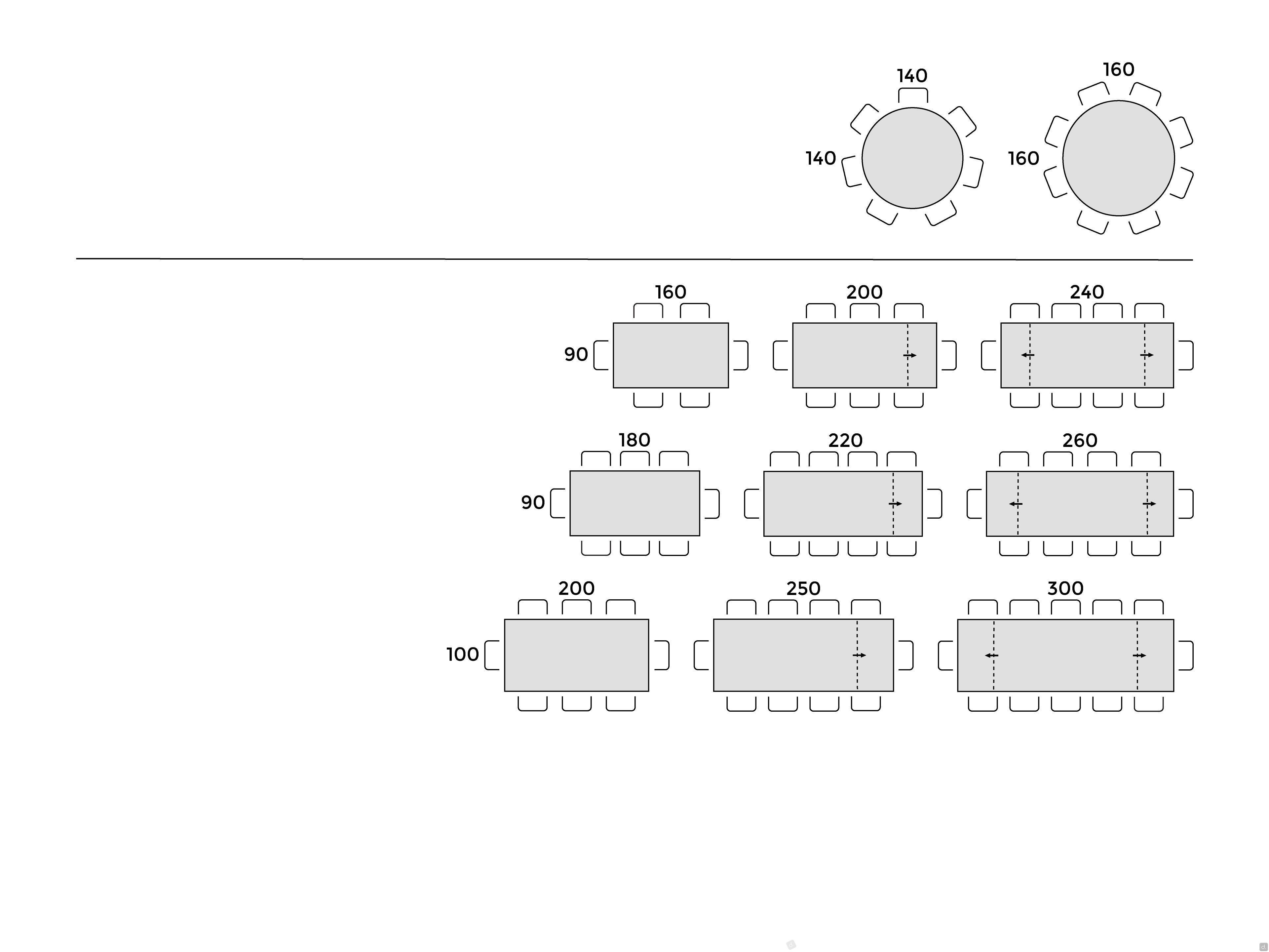 Technische Daten und AusstattungDie ausziehbaren Modelle 160 x 90 cm und 180 x 90 cm sind mit 2 Seitenverlängerungen von 40 cm ausgestattet, während das ausziehbare Modell 200 x 100 cm mit 2 Seitenverlängerungen von 50 cm ausgestattet ist.Spezifikation der MaterialienMassivholz: Holzelement, das direkt aus dem Schnitt des Baumstammes gewonnen wird; je nach Baumart haben wir massiven Nussbaum, Kastanie, Kirsche, Esche und viele andere. Amerikanischer Nussbaum aus ökologisch nachhaltiger Forstwirtschaft ist ein sehr hartes Holz, ideal für die Herstellung der tragenden Elemente von Möbeln.Eiche natur gebürstet, anthrazitgrau und amerikanischer Nussbaum in Massivholzausführung; Canaletto Nussbaum in Furnierholzausführung.Holz mit naturbelassenen Kanten: werden Tafeln aus Massivholz verwendet, die von dem Außenteil des Baustammes gewonnen werden. Sie werden auf einer Platte aus Massivholz aufgebracht. Durch die Folding-Verarbeitung wird dann das Holzpaneel gefaltet, ohne Kappschnitte ausführen zu müssen. Auf diese Weise wird an den Ecken die Kontinuität des Furniers ermöglicht.Keramikstein: aus Feinsteinzeug in Verbindung mit einer Glasplatte, Keramikplatten werden mit einer innovativen Technologie aus einer Basis von anorganischen Materialien gewonnen. Dieses Material hat einige Besonderheiten, die es ideal für die Herstellung von Tischplatten machen: Es hat eine reduzierte Dicke, ist resistent gegen Kratzer, Abnutzung und hohe Temperaturen und lässt sich leicht reinigen.Marmor: elegantes Material, gekennzeichnet durch offene Adern, die manchmal Fugen auf Harzbasis aufweisen können, die bei leichter Rauheit der Oberfläche die Ebene ausgleichen und gleichzeitig eine höhere strukturelle Festigkeit gewährleisten. Da es sich um einen Naturstein handelt, der teilweise mehr als eine Million Jahre alt ist, kann die Fläche nicht als ''perfekt'' bezeichnet werden; jede Platte unterscheidet sich von der anderen, je nach dem, wie sie geschnitten und bearbeitet wurde. Er kann natürliche kleine Unvollkommenheiten aufweisen, die für Marmor charakteristisch sind und nicht auf Mängel zurückzuführen sind. Marmorplatten sind von Natur aus porös: Jede Schutzbehandlung mit Polyester verdeckt diese Porosität bei Berührung und lässt alle natürlichen Merkmale der Platte sichtbar.