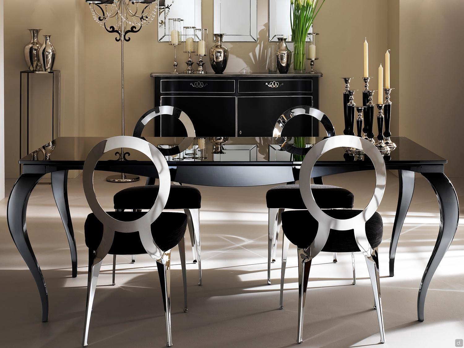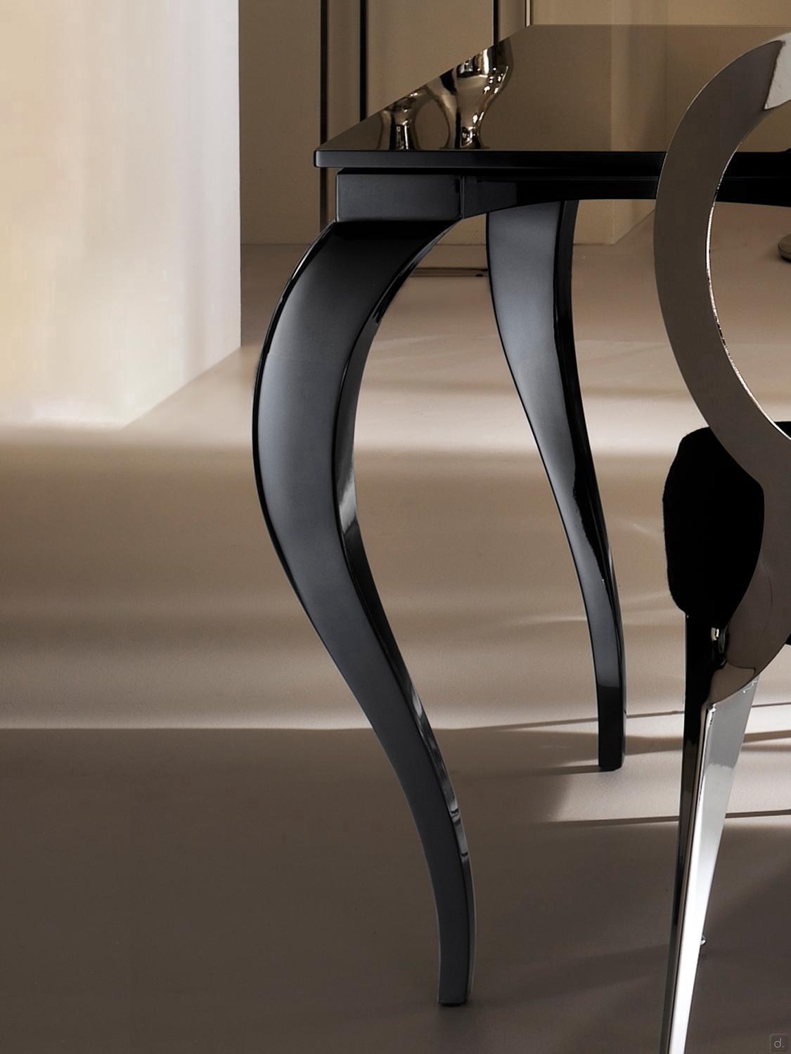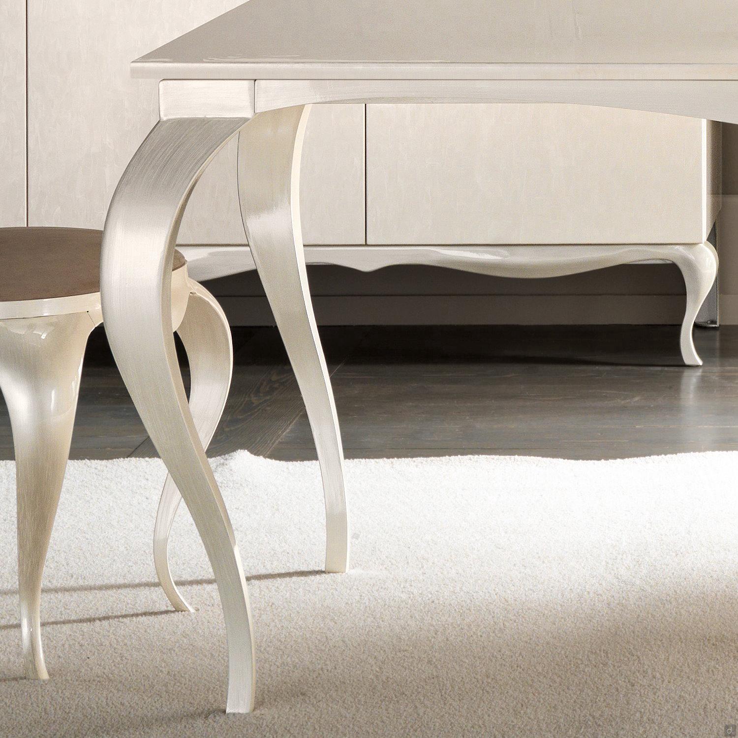 Raffaello ist ein eleganter Tisch mit Säbelbeinen von Cantori, fix oder ausziehbar erhältlich. Die Platte ist aus siebgedrucktem Glas oder aus dekoriertem Holz.Die klassischen Säbelbeine, zusammen mit der Leichtigkeit des Glases, verleihen Raffaello Tisch ein elegantes und raffiniertes Aussehen. Die handwerklichen Ausführungen in Perlmutt bereichern dagegen die Holzplatte und das Gestell aus Aluminium, um einen Total Look Effekt zu schaffen. Raffaello ist ein hochwertiges Produkt aus wertvollen Materialien, ideal für die raffinierte Einrichtung von traditionellen Wohnzimmern und Esszimmern.