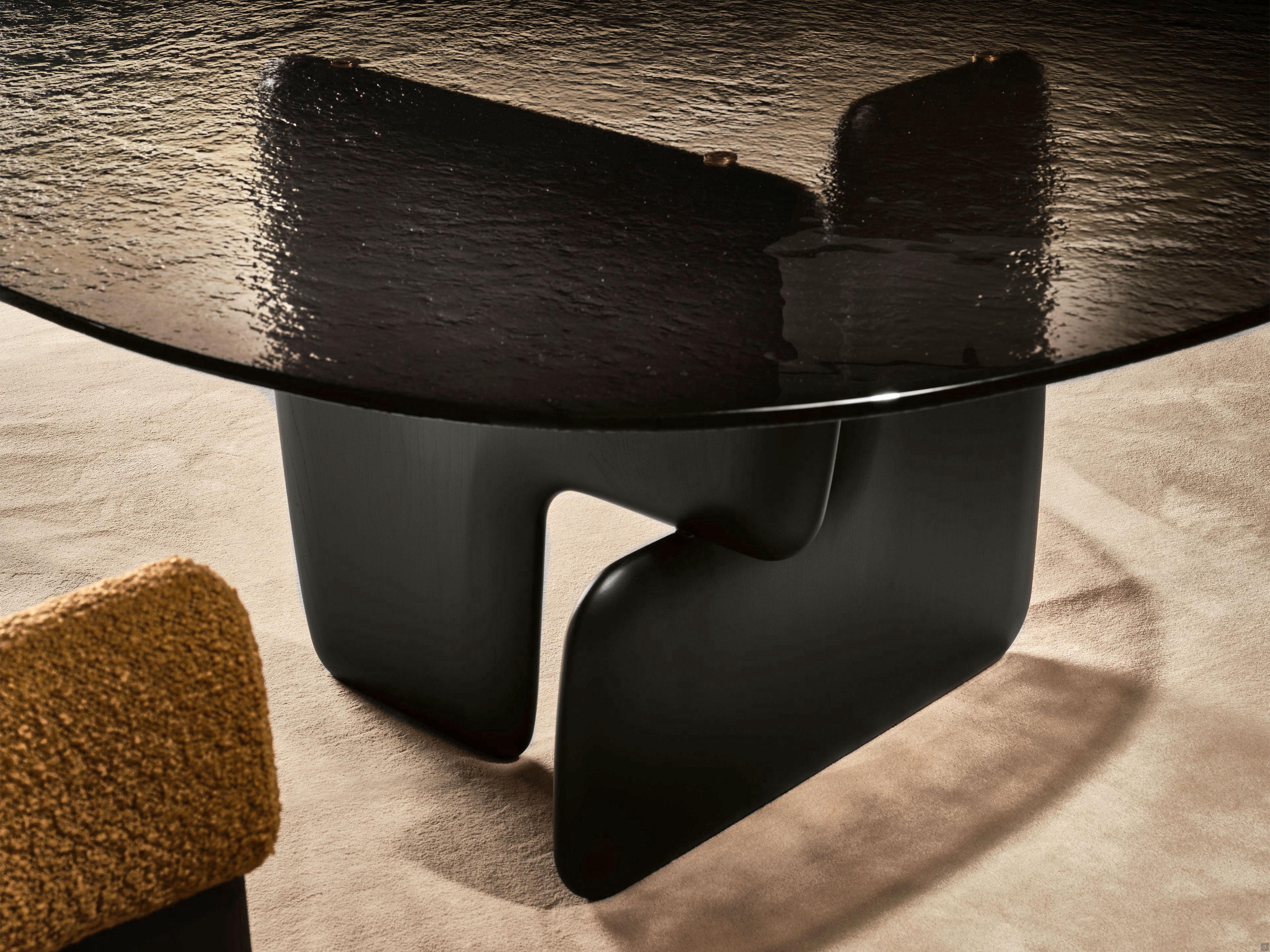 Arden ist ein skulpturaler Tisch mit Designerbeinen, der eine majestätische Wirkung in einem modernen und eleganten Esszimmer erzeugen soll. Ein besonderes Detail sind die Elemente, aus denen die Tischbasis besteht. Sie sind organisch geformt und abgeschrägt, als ob sie poliert, gedreht und in einem faszinierenden Spiel von Volumen ineinander verschränkt wären; die Möglichkeit, Holz, Marmor, strukturiertes Harz oder gebürstetes Metall zu kombinieren, schafft bemerkenswerte Material- und Farbkombinationen.