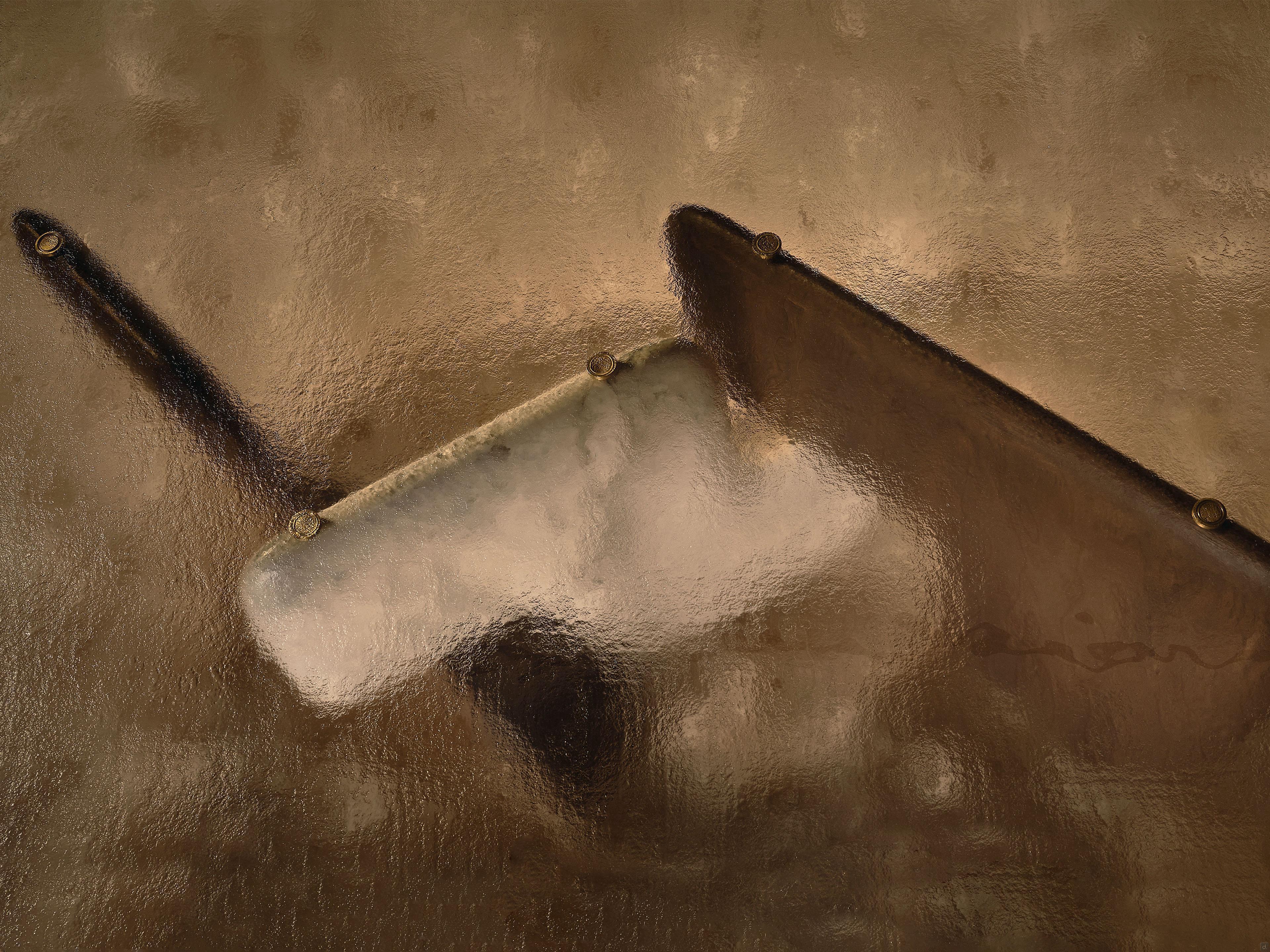 Die Platte wird in Fasslängen von 240 und 300 cm, rund und quadratisch für 8 Personen angeboten; je nach Format kann sie mit den Transparenzen von Glas und gebranntem Glas mit einer typisch gehämmerten Oberfläche oder mit der natürlichen Schönheit von Holz oder Marmor spielen.