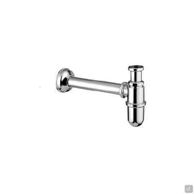 Universeller Siphon, geeignet, erhältlich „platzsparend“ aus Kunststoff oder „flaschenförmig“ mit Stahlrosette. Der Abfluss ist nicht enthalten.