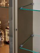 Ripiani Interni: in vetro trasparente, cm sp.0,6. La vetrina ne include di serie 2, mentre la colonna battente 5 (uno nel modulo inferiore, i restanti 4 nel modulo superiore da 160 cm).
