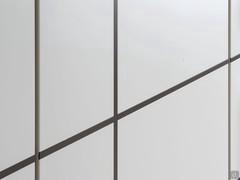 Türen aus Glas/Stein: auf 2,8 cm starkem, eloxiertem Aluminiumrahmen. Glas, 0,4 cm stark, auf den Rahmen geklebt. Laminam-Keramikstein, 0,3 cm stark, mit Glasfaserrückseite auf den Rahmen geklebt. In den Rahmen integrierter Griff, bei der 2-Flügel-Version an der rechten Türöffnung angebracht.
