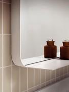 alzatina: pensata per completare i mobili bagno con top in nobilitato stratificato HPL, pietra marmo, gres, quarzo-resina o Minera-Kolor; particolarmente indicata per pareti non perfettamente in squadra e per l'abbinamento a specchiere in appoggio.