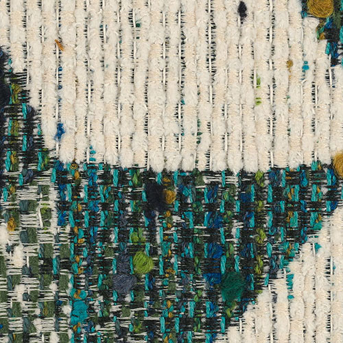 Decorative fabric with irregular geometric pattern, weave with slightly curled and embossed work similar to bouclé.